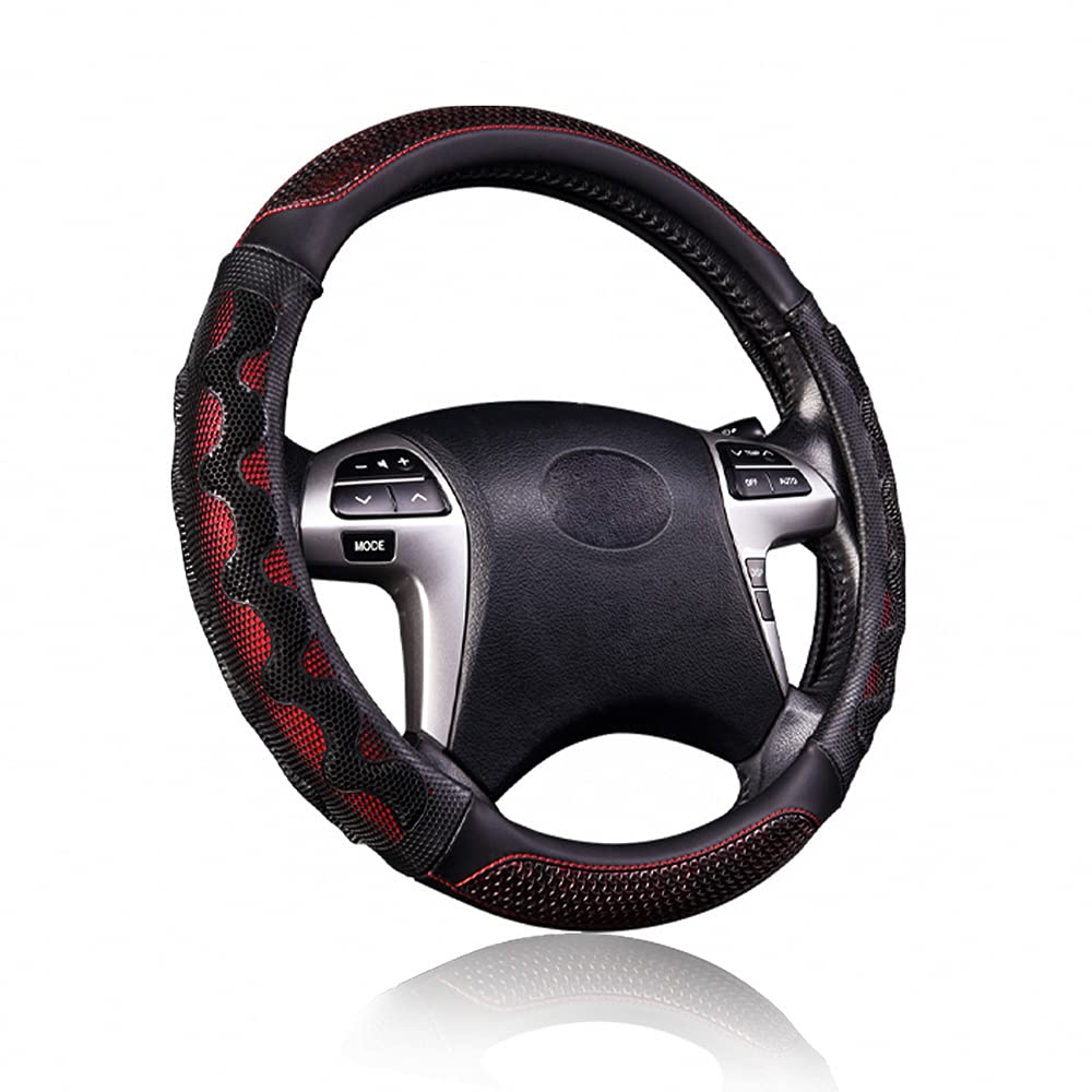 Flying Banner Car Steering Wheel Cover Faux Leather Massage Universal Fit 3D Honeycomb Hole Anti-Slip Sporty 15 Inches (Red With