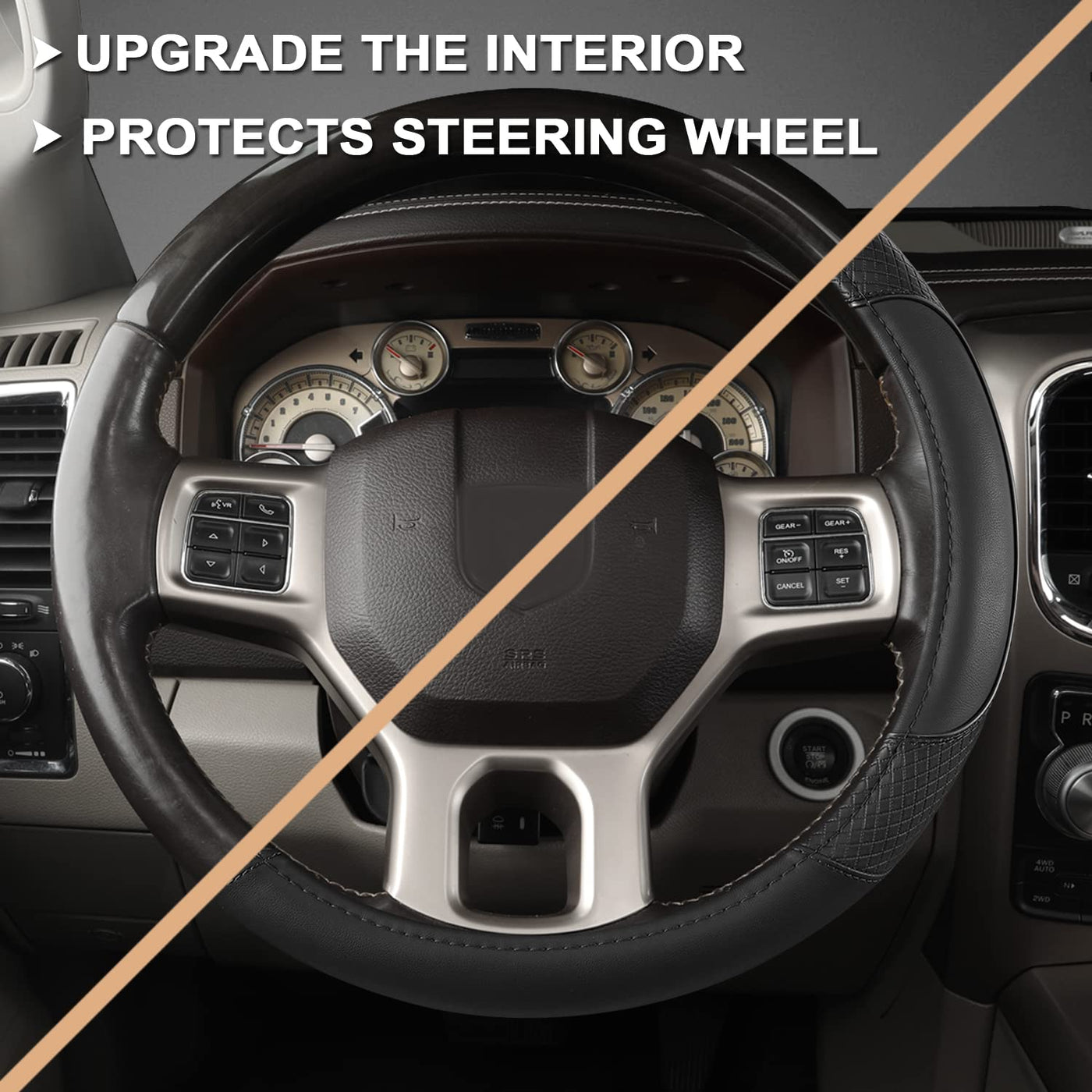 GIANT PANDA Car Steering Wheel Cover for Dodge Ram 1500 2500 3500 15.5-16 inches- Solid Black