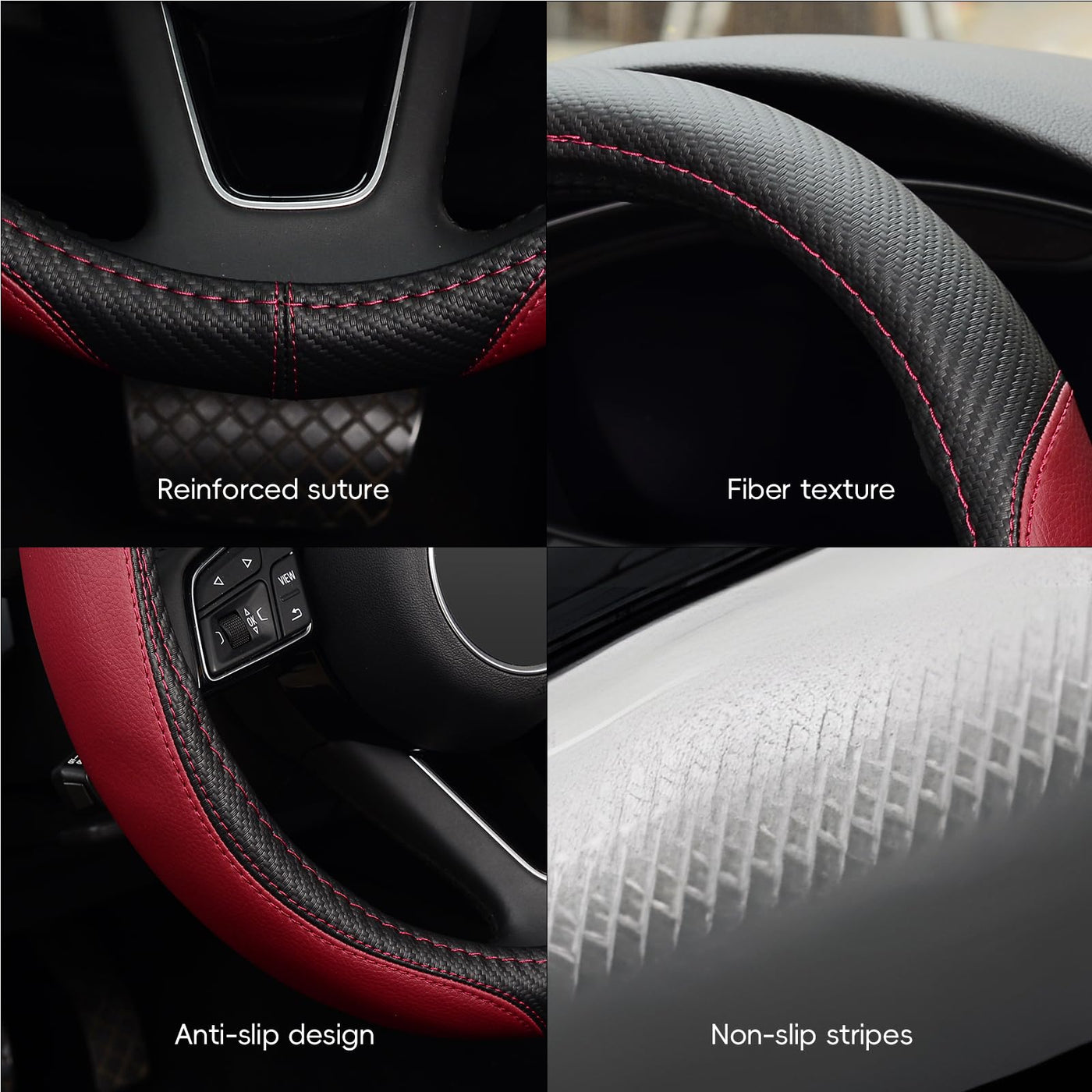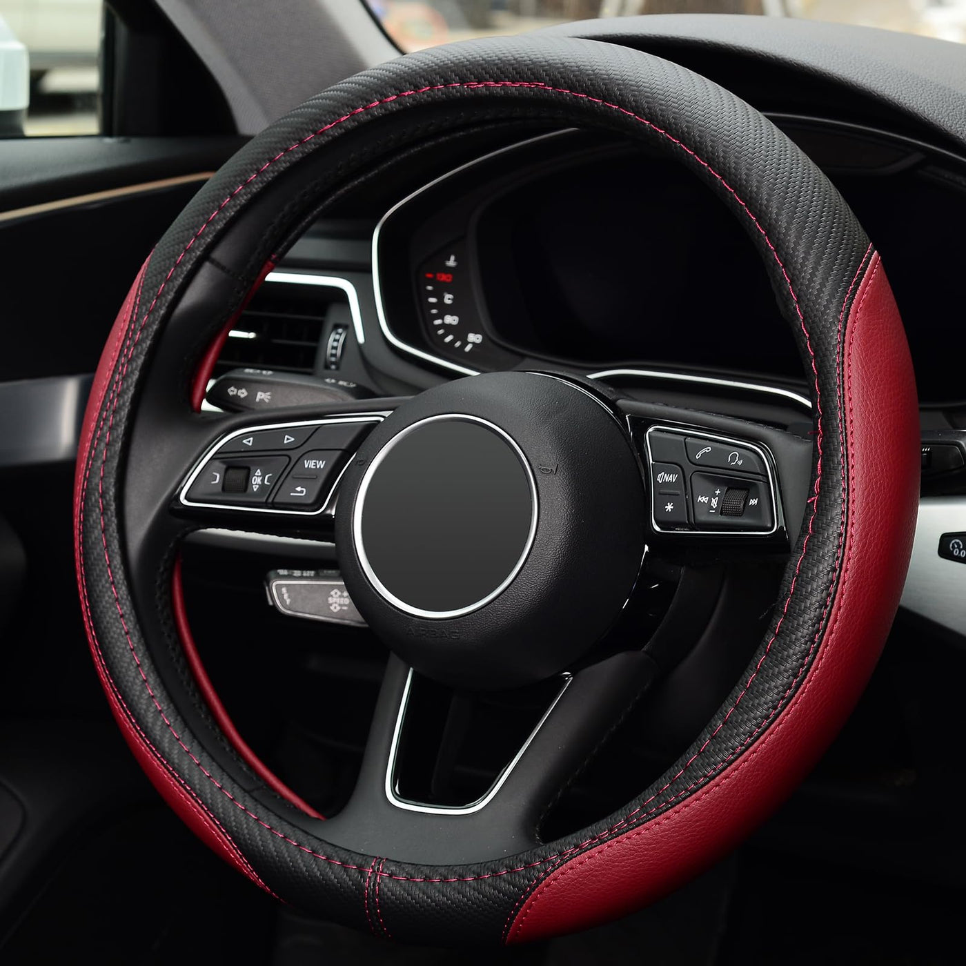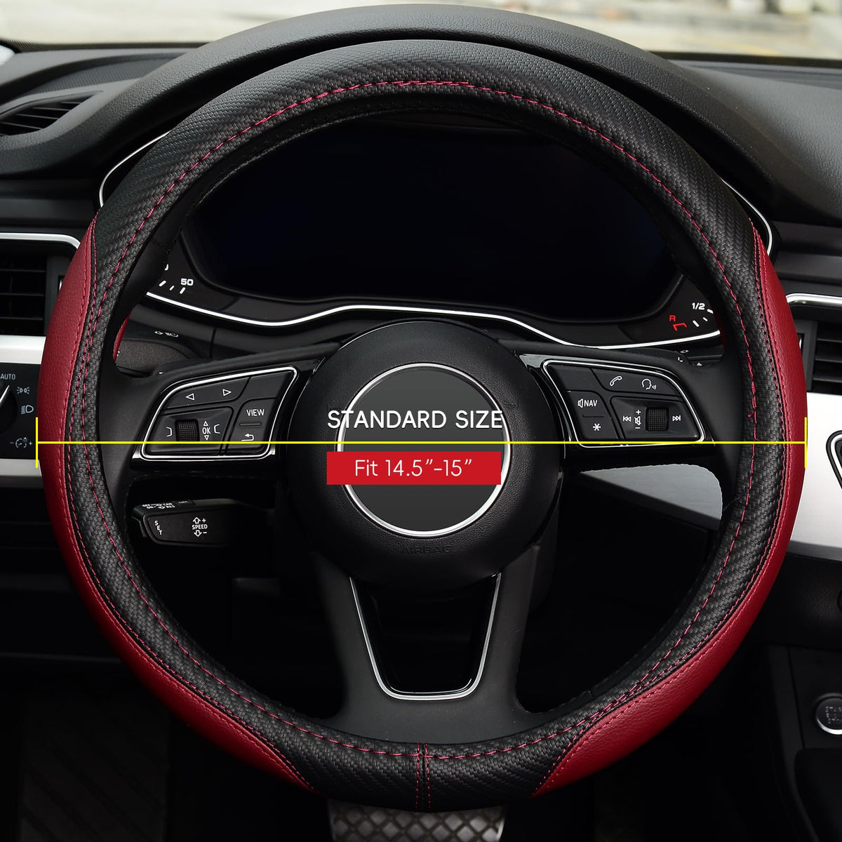 LABBYWAY Microfiber Leather Auto Car Steering Wheel Cover, Universal 15 Inch Anti-Slip Wheel Protector, Claret