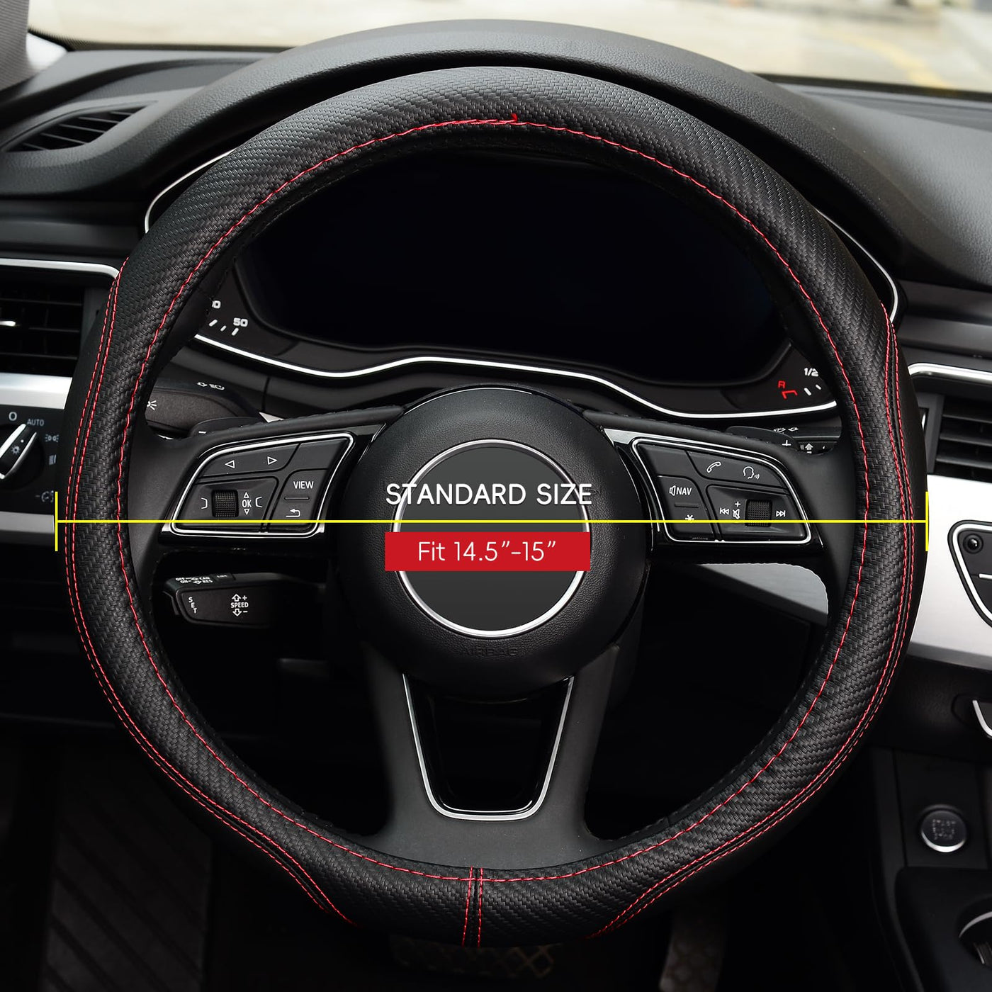 LABBYWAY Microfiber Leather Auto Car Steering Wheel Cover, Universal Fit 15 Inch Anti-Slip Wheel Protector, Black