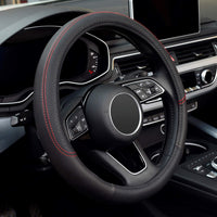 Q: Does the steering wheel cover provide any additional benefits while driving?A: Yes, the LABBYWAY steering wheel cover not only enhances the aesthetic of your car but also offers skidproof and heat-resistant features, which help reduce driving fatigue and improve grip during all seasons.