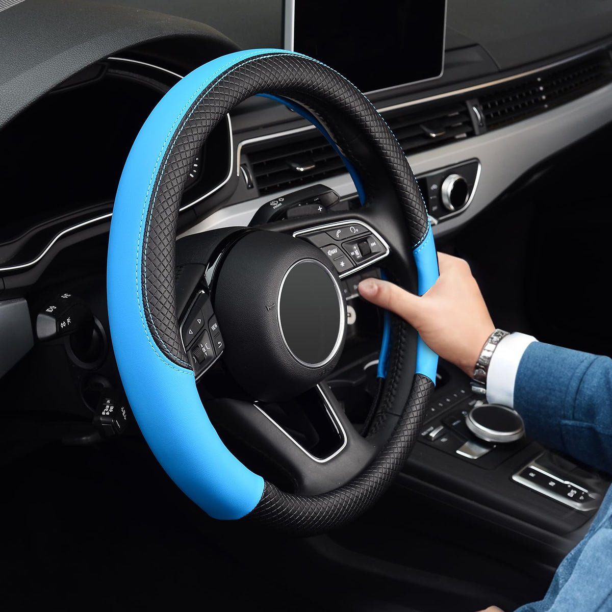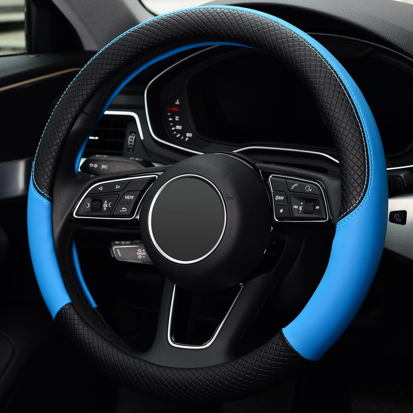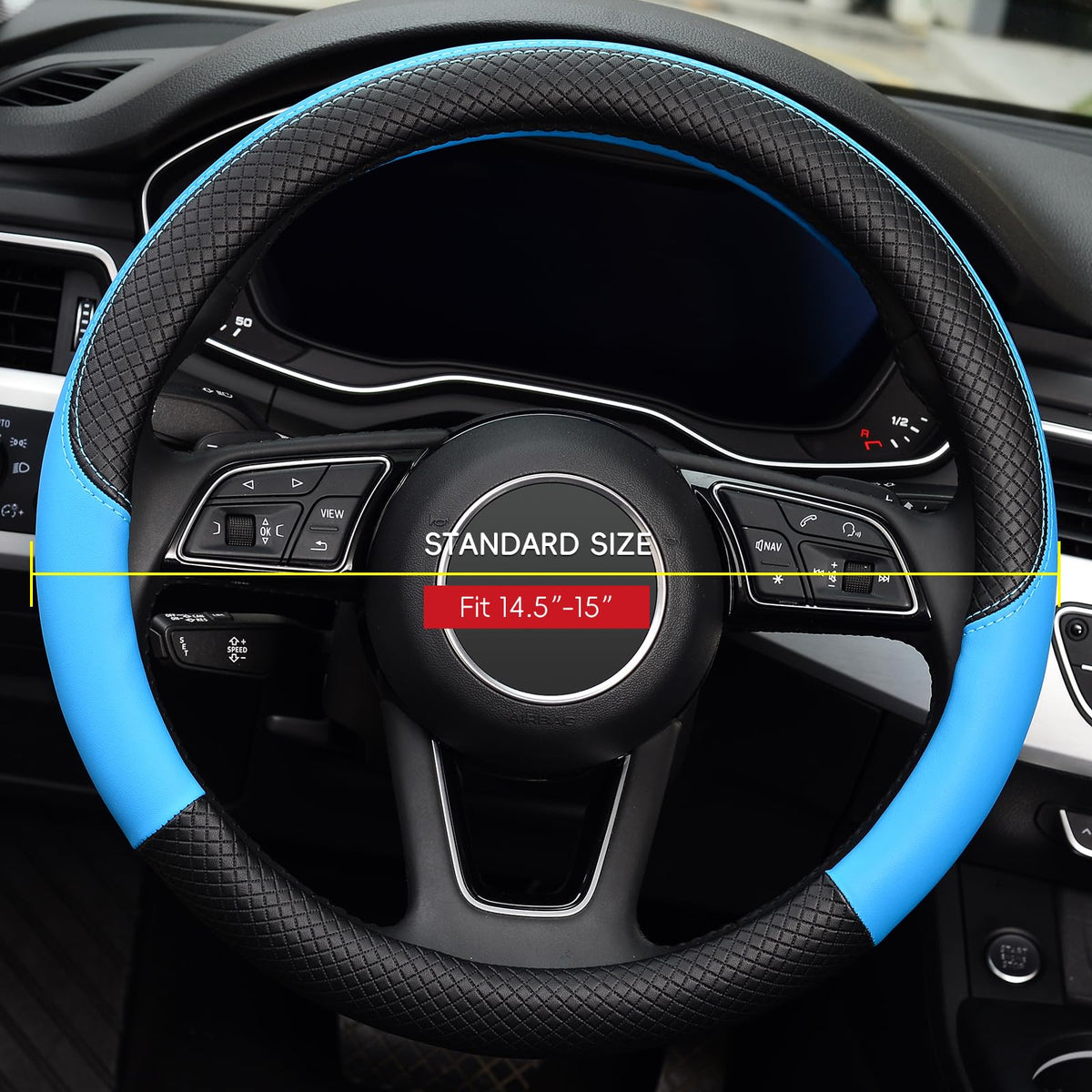 LABBYWAY Microfiber Leather Steering Wheel Cover, Universal Fit 15 Inch Car Anti-Slip Wheel Protector (Black and Blue)