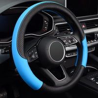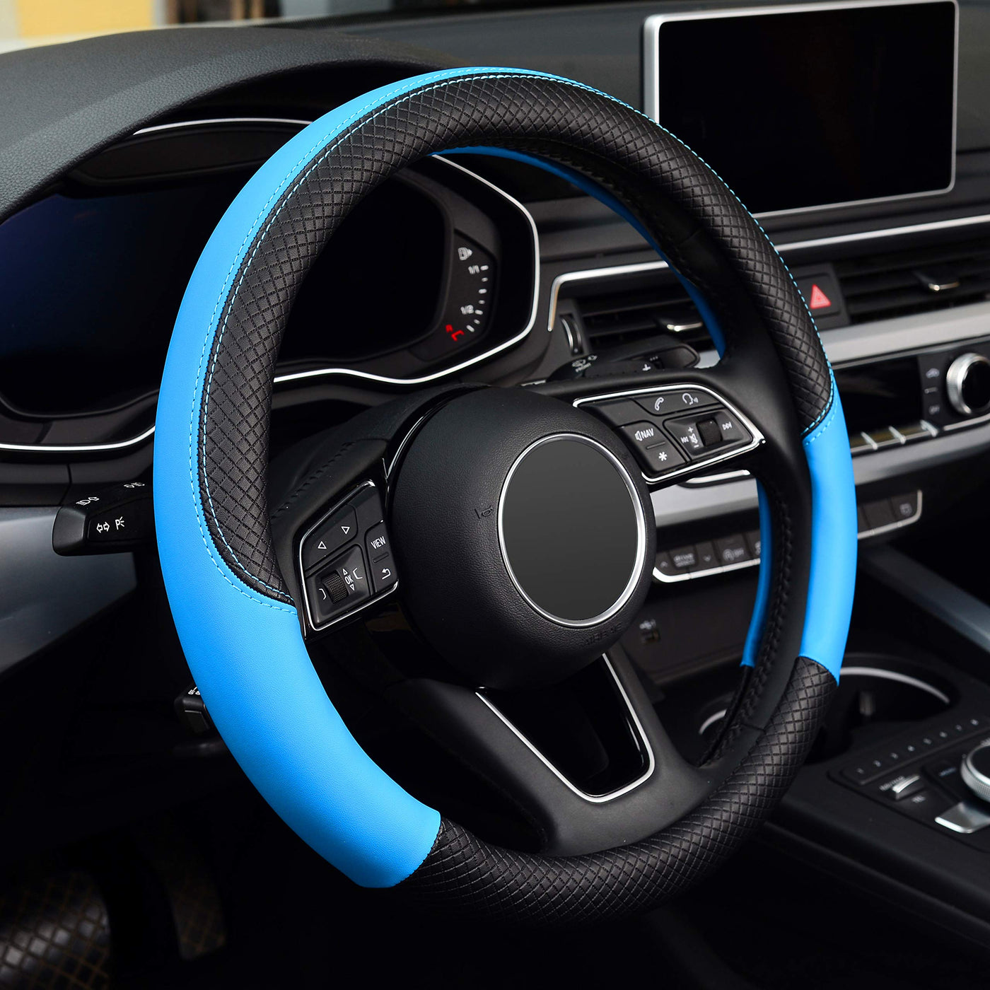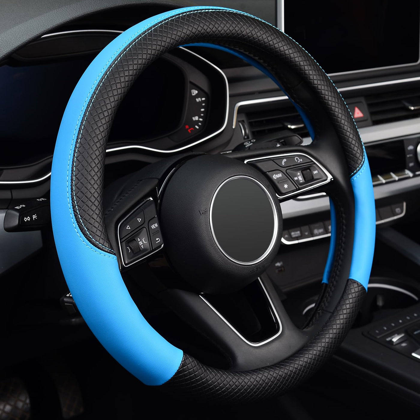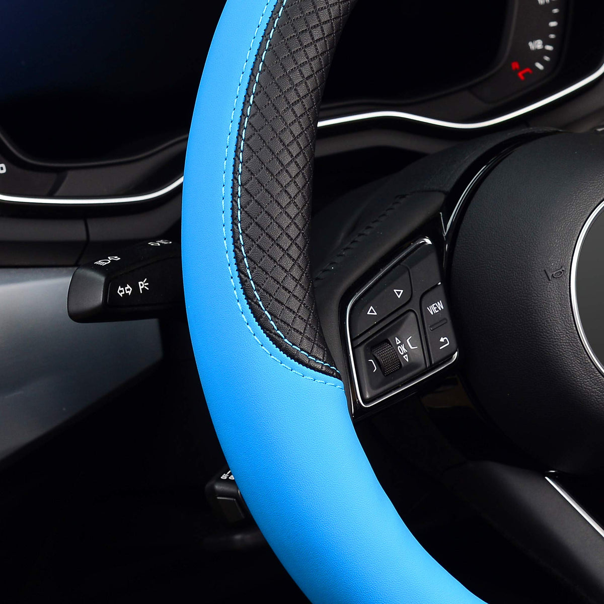 LABBYWAY Microfiber Leather Steering Wheel Cover, Universal Fit 15 Inch Car Anti-Slip Wheel Protector (Black and Blue)
