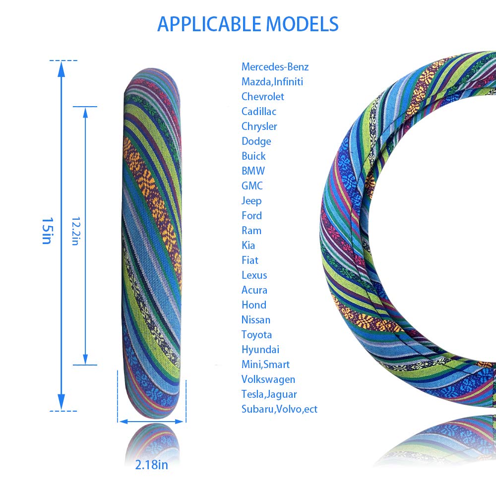 Lsauto Universal 15Inch Ethnic Style Baja Blanket Steering Wheel Cover With Coarse Flax Cloth And Sweat Absorption Anti Slip Car