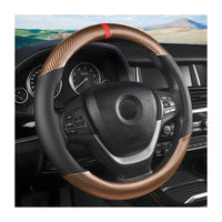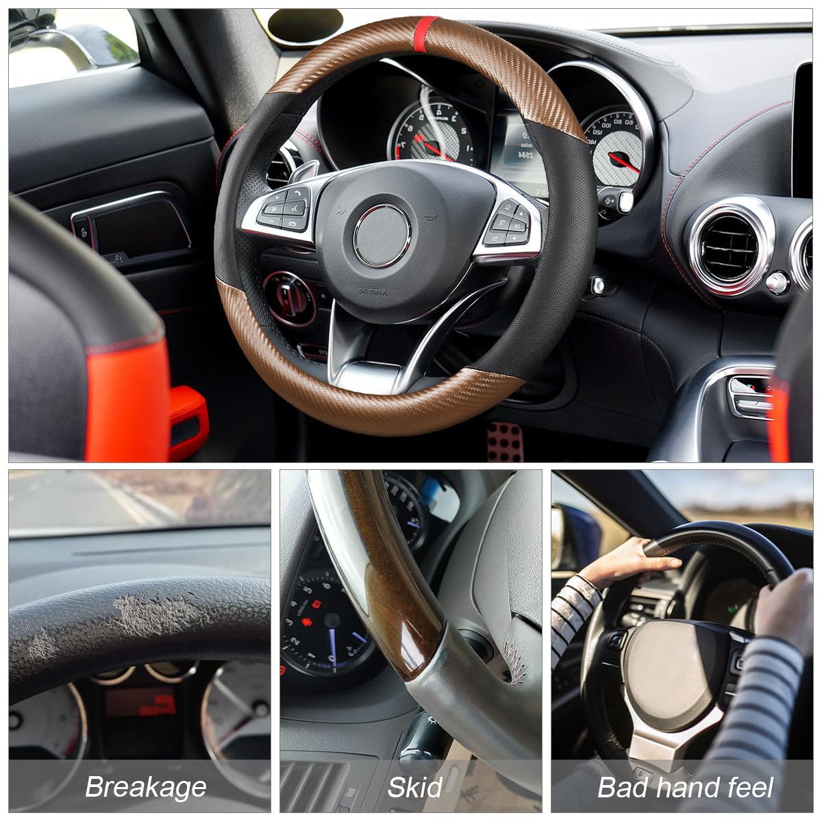 Moly Magnolia Carbon Fiber Car Steering Wheel Cover, Universal 15 Inch Breathable Anti Slip Steering Wheel Covers, Car Interior Accessories Fit For Most Car, Trucks, Suv (Carbon Fiber Coffee)