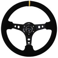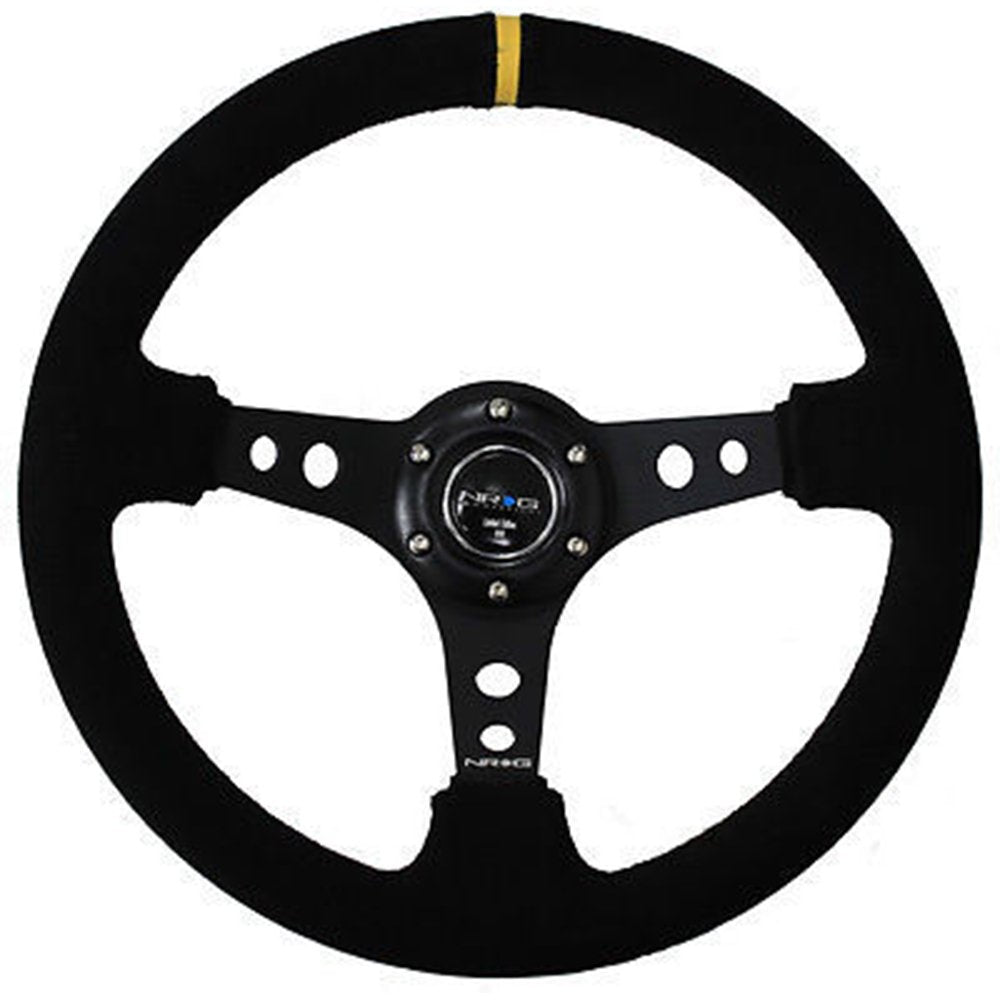 NRG Innovations NRG-RST-006S-Y Reinforced Steering Wheel 350mm Sport Steering Wheel (3" Deep), Suede Black Stitch with Yellow Center Mark