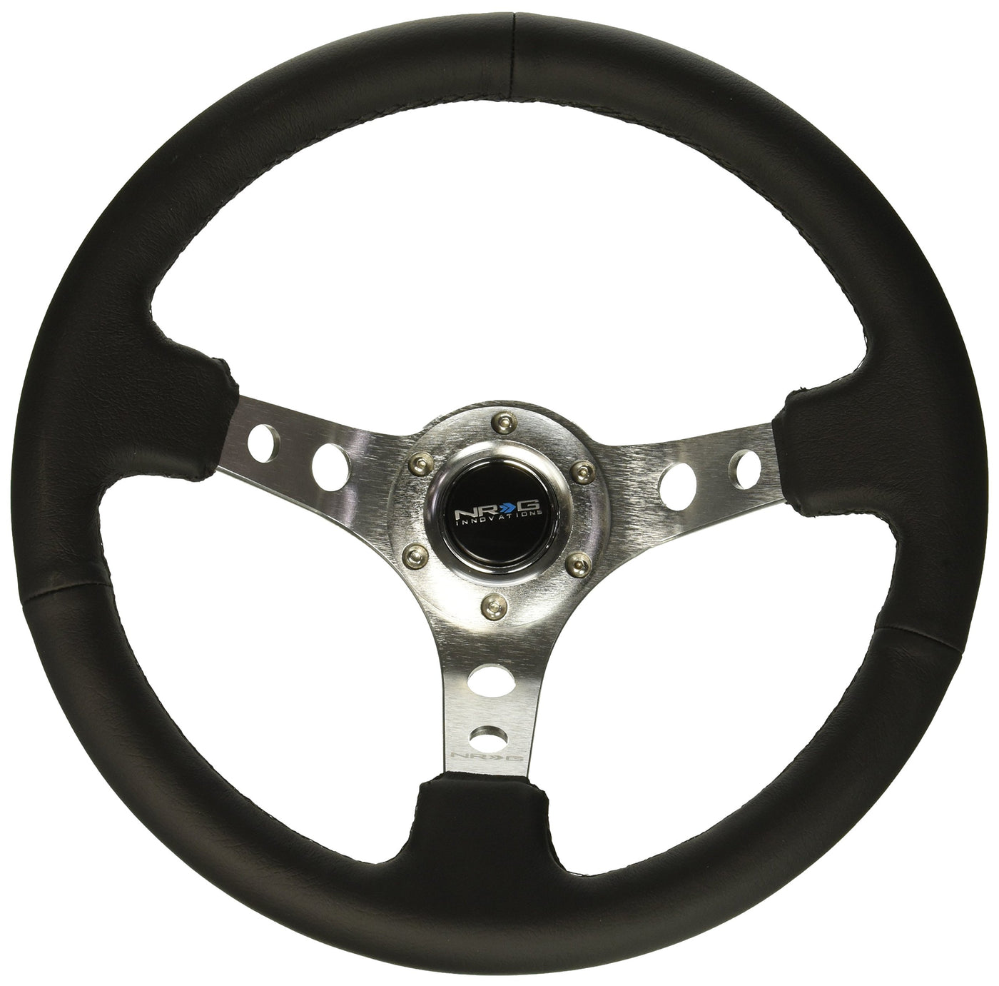 NRG Innovations NRG-RST-006SL Reinforced Steering Wheel 350mm Sport Steering Wheel (3'' Deep), Silver Spoke with Round Holes, Bl