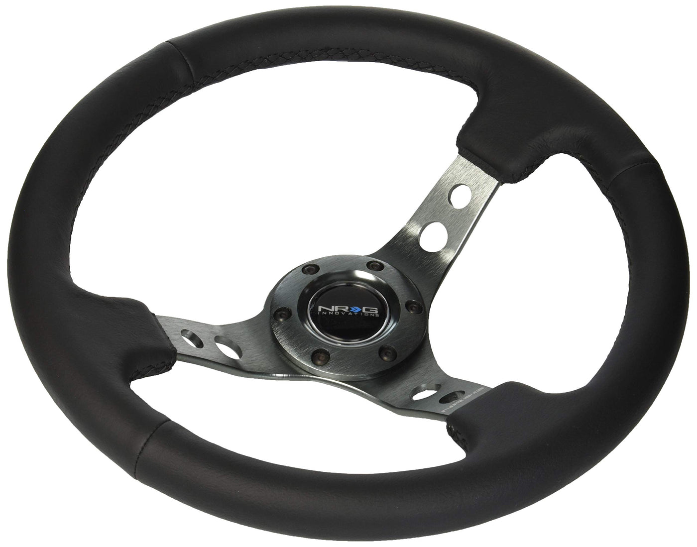 Nrg Innovations Rst-006Gm Reinforced Steering Wheel (350Mm Sport Steering Wheel (3' Deep) - Gun Metal Spokewith Round Holes/Black Leather)