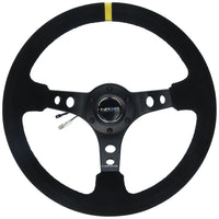 NRG Innovations RST-006S-Y Reinforced Steering Wheel (350mm Sport Steering Wheel (3" Deep) - Suede Black Stitchwith Yellow Center Mark)