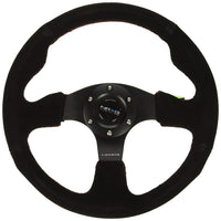 Q: How do I care for and maintain the suede material on this steering wheel?A: To maintain the suede material of the NRG Innovations RST-012S-RS Steering Wheel, regularly clean it with a soft brush or cloth to remove dirt and debris. Avoid using harsh chemicals and ensure the wheel is not exposed to excessive moisture to preserve its quality and longevity.