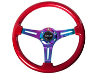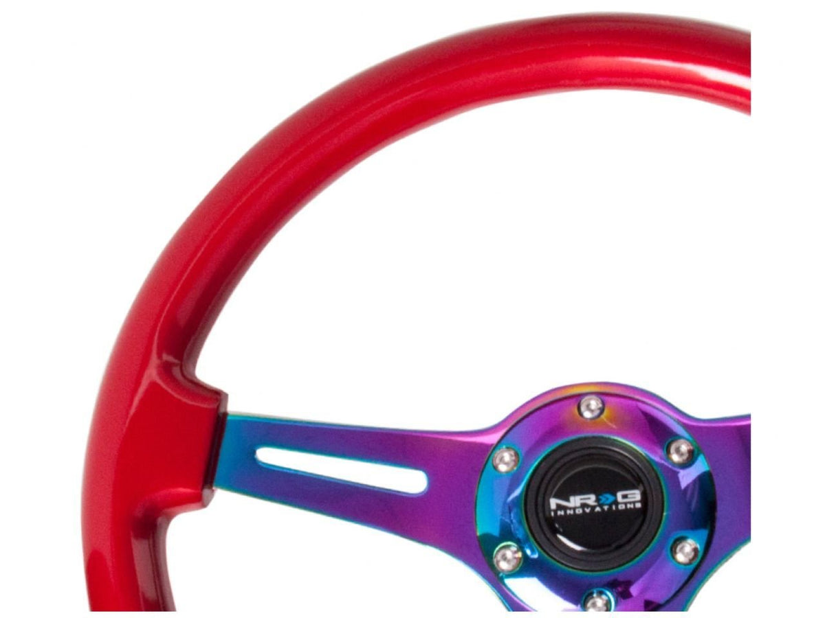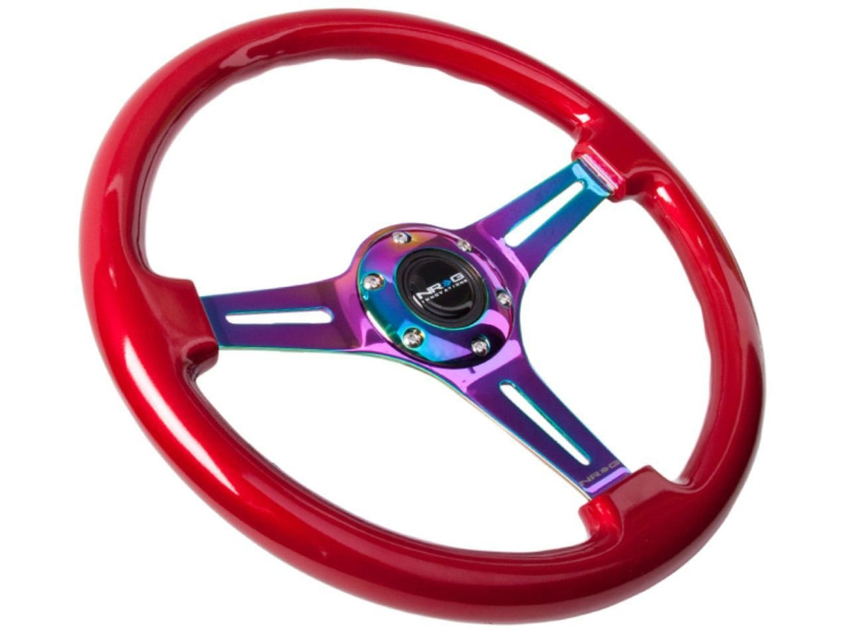 Q: What materials are used in the construction of this steering wheel?A: The NRG Innovations ST-015MC-RD steering wheel is constructed from high-quality wood, providing a classic look and feel, complemented by a vibrant red grip for better handling.
