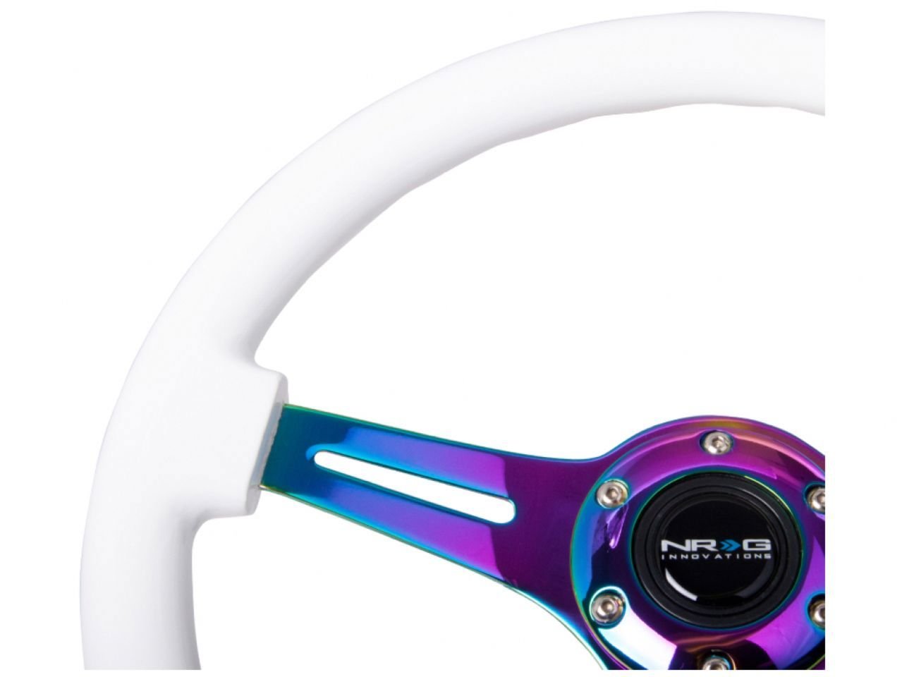 Q: Is the NRG Innovations ST-015MC-WT steering wheel lightweight?A: Yes, the NRG Innovations ST-015MC-WT steering wheel is designed to be lightweight, weighing approximately 3.0 lbs. This lightweight design helps improve steering response and overall driving experience, making it ideal for both casual and performance driving.