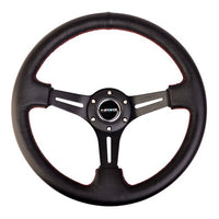NRG ST-018R 350mm Sport Steering Wheel 3" Deep Black Leather with Red Stitching This NRG steering wheel provides the best in both quality and styling for maximum control, NRG steering wheels are sure to give your vehicle that extra edge of control and styling. NRG steering wheel works with the following steering wheel hub adapter NRG, Sparco and MOMO steering wheel hub adapter