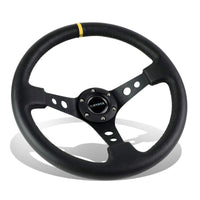NRG Steering Wheel - 06 (Deep Dish) - 350mm (13.78 inches) - Black Leather with Black Spokes/Yellow Stripe - Part # ST-006BK-Y by NRG Innovations