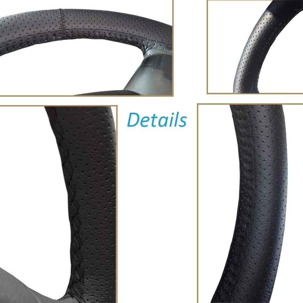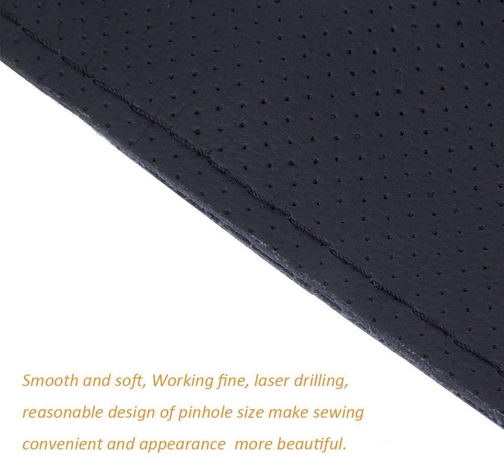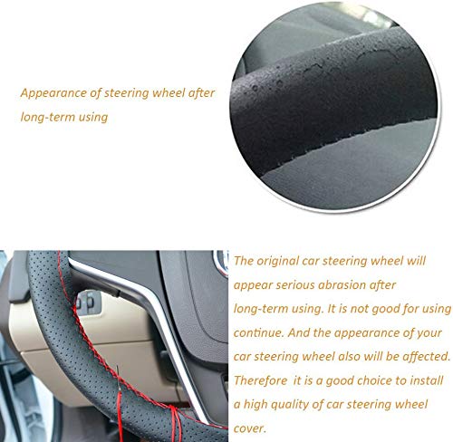 Onerbuy Universal Leather Car Steering Wheel Stitch On Wrap Cover DIY Sewing Breathable and Anti Slip, 15-Inch (Black with Red)