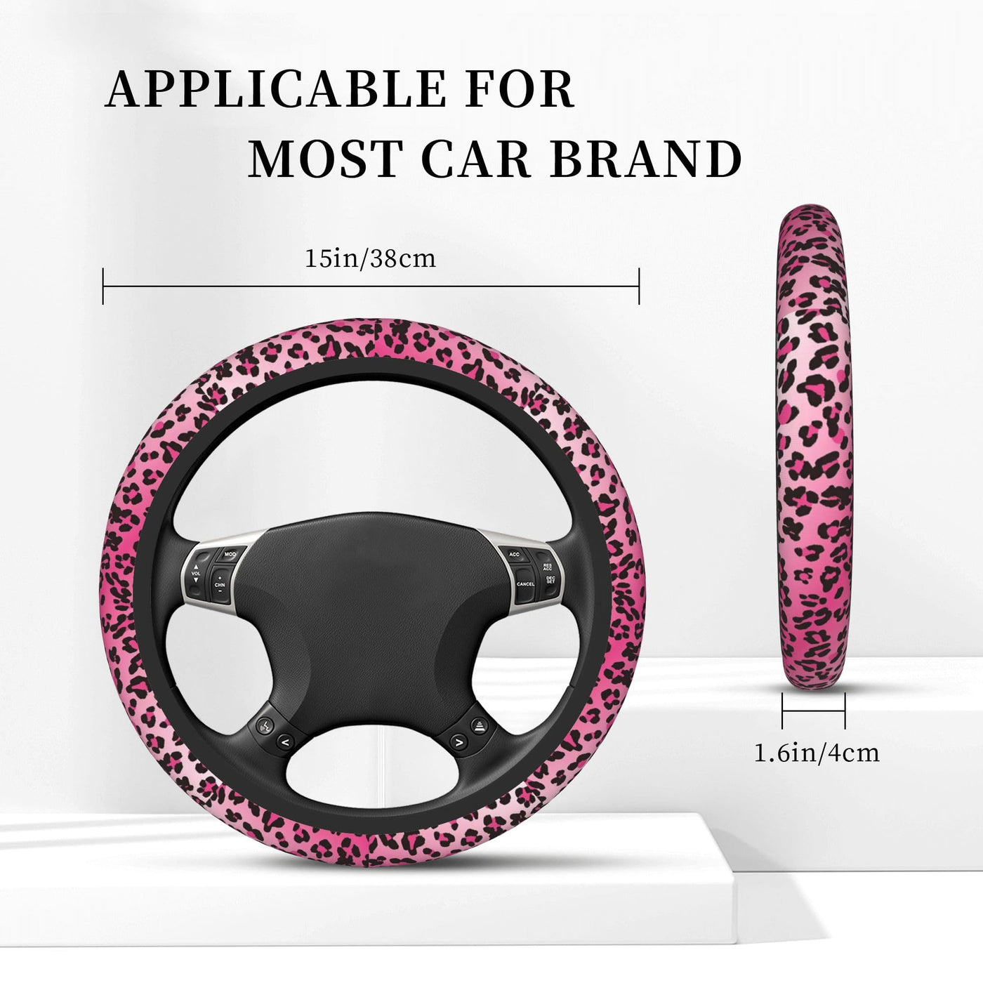 Pink Steering Wheel Cover for Women, Leopard Pattern Steering Wheel Cover Protector Non Slip Breathable Universal 15 Inch Cute C