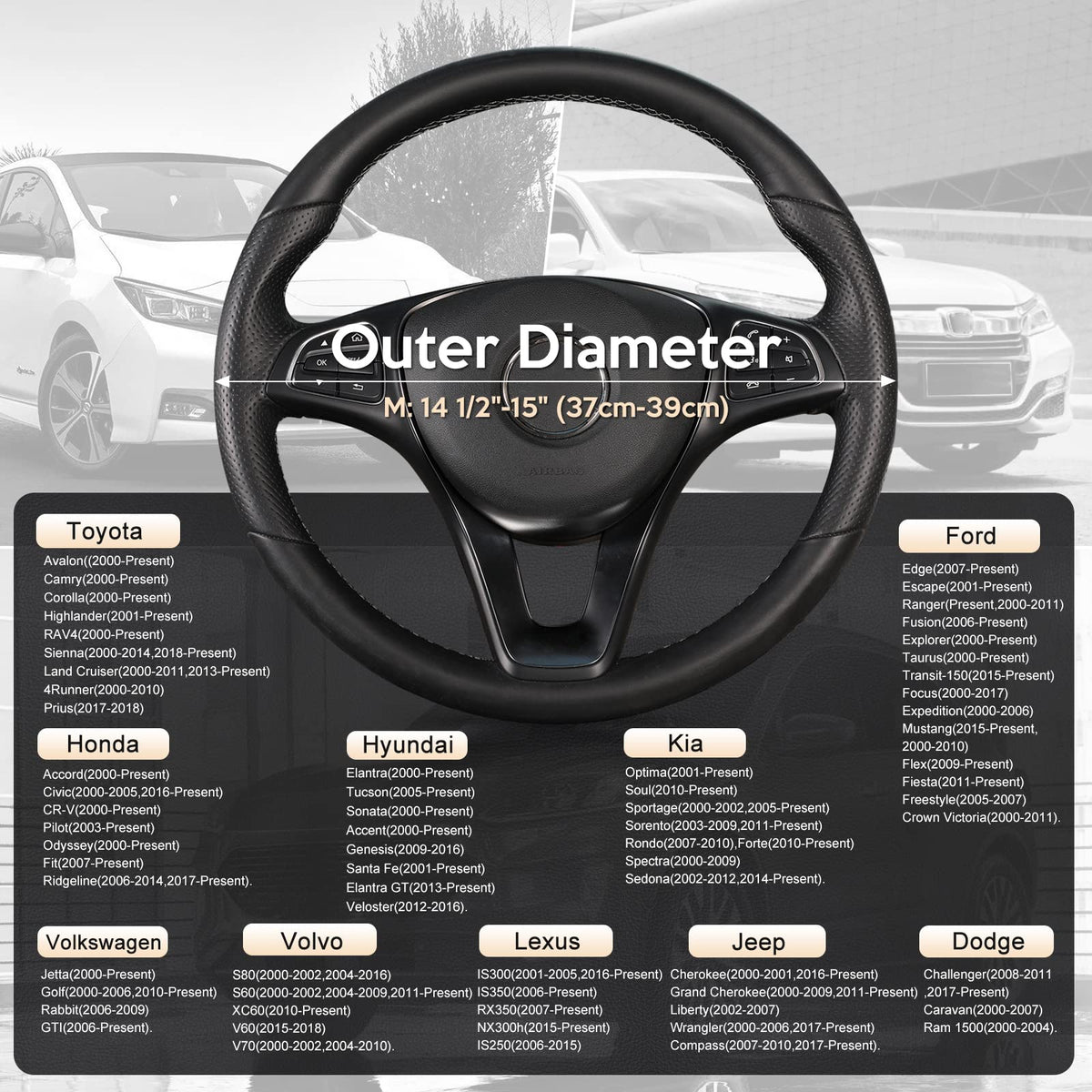 SEG Direct Car Steering Wheel Cover for All Standard-Size Steering Wheels with 14 1/2 inches - 15 inches Outer Diameter, Black M