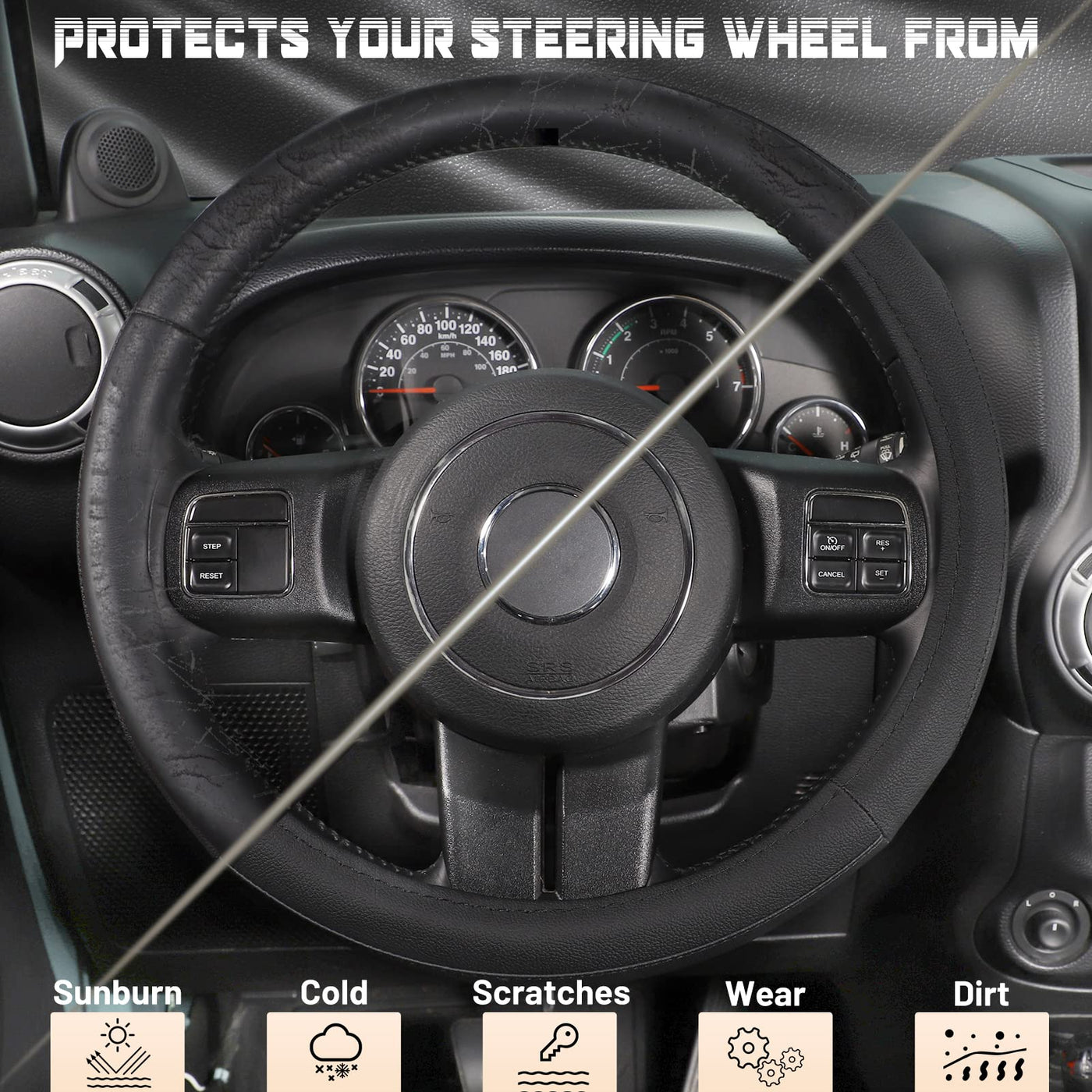Q: Does this steering wheel cover provide a better grip?A: Absolutely! The cover features a non-slip microfiber leather exterior and rubber lining, which enhances grip and control while driving, improving overall safety.