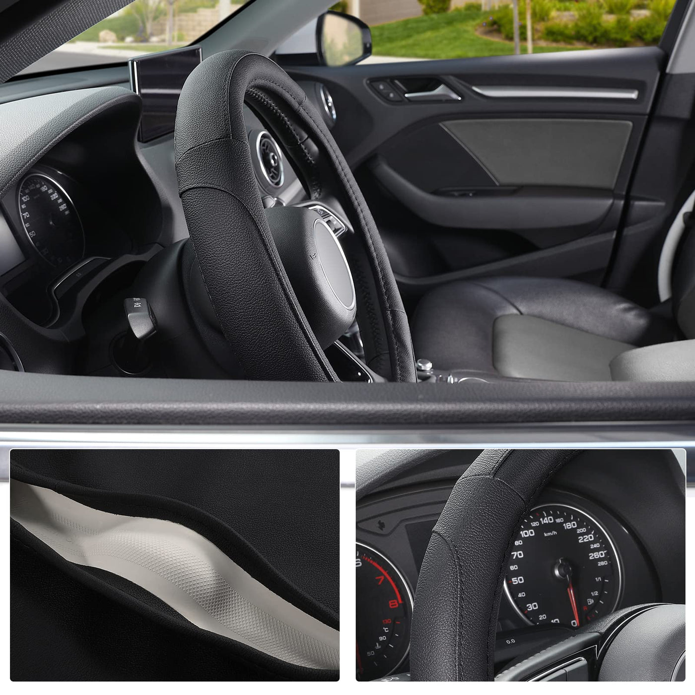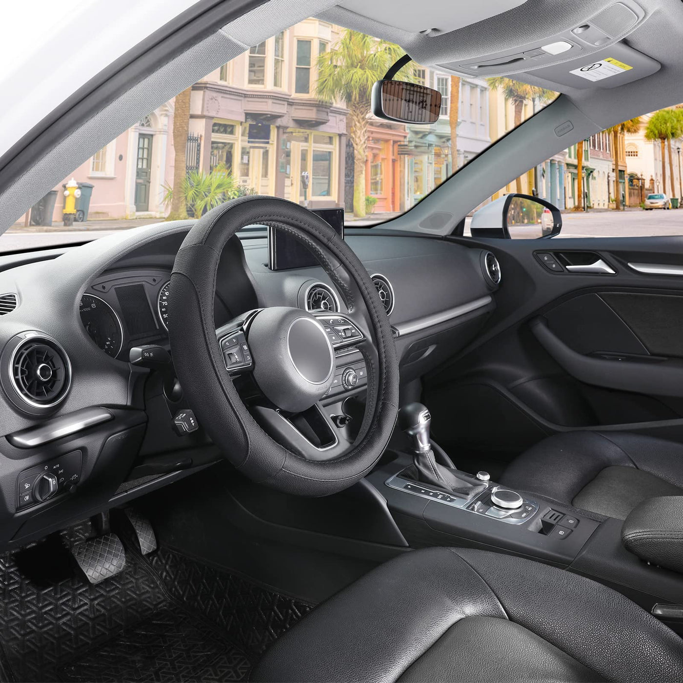 SEG Direct Car Steering Wheel Cover for Prius Civic 14-14.25 inch, Black Microfiber Leather