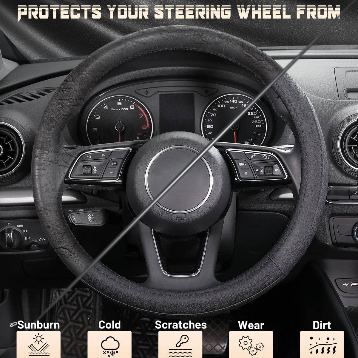 Q: Does the steering wheel cover provide any protection?A: Absolutely! The SEG Direct Steering Wheel Cover protects your steering wheel from sunburn, scratches, fading, wear, and dirt. Its non-slip design also ensures safer driving by improving your grip.