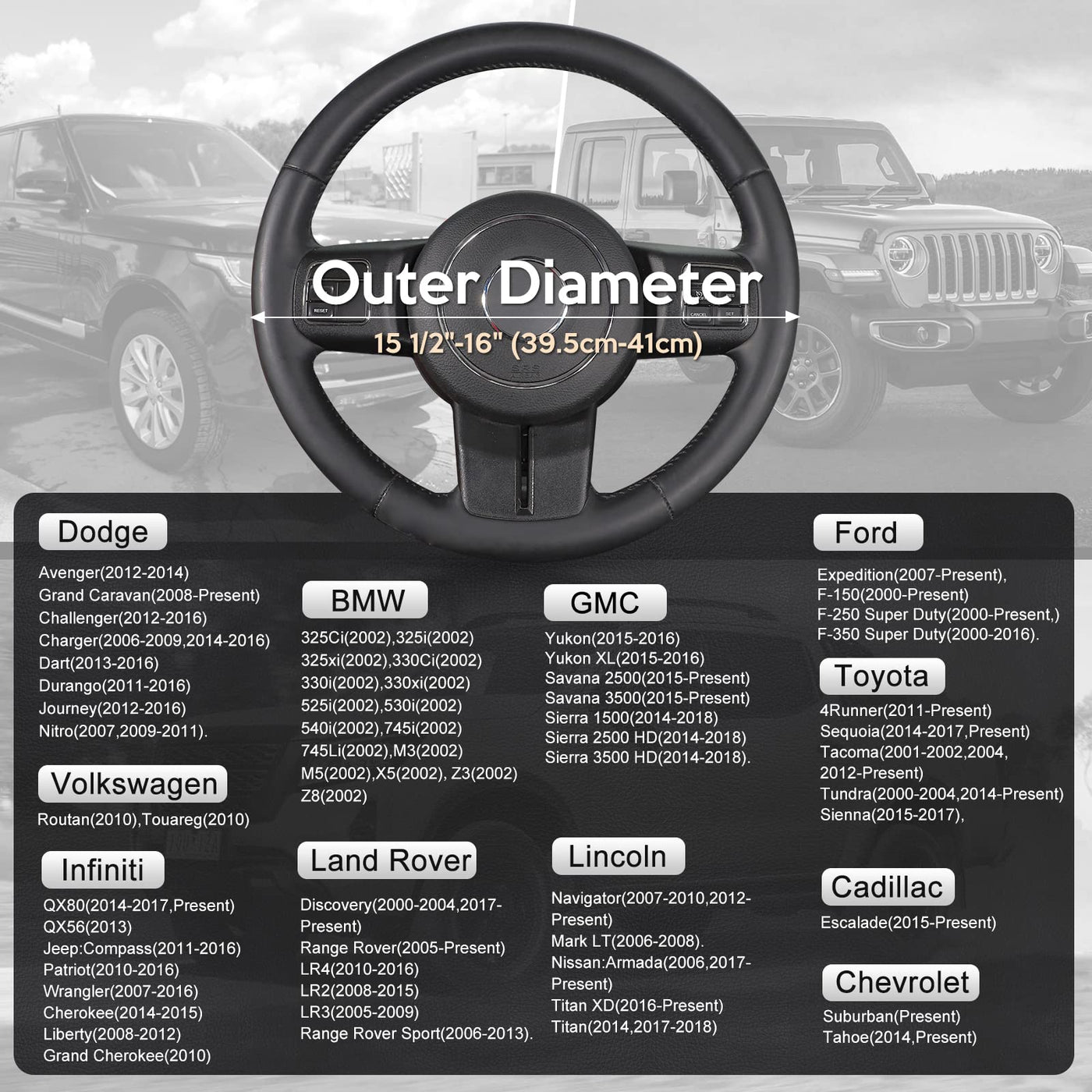 SEG Direct Car Steering Wheel Cover Large-Size for F150 F250 F350 Ram 4Runner Tacoma Tundra Range Rover Model S X with 15 1/2 in