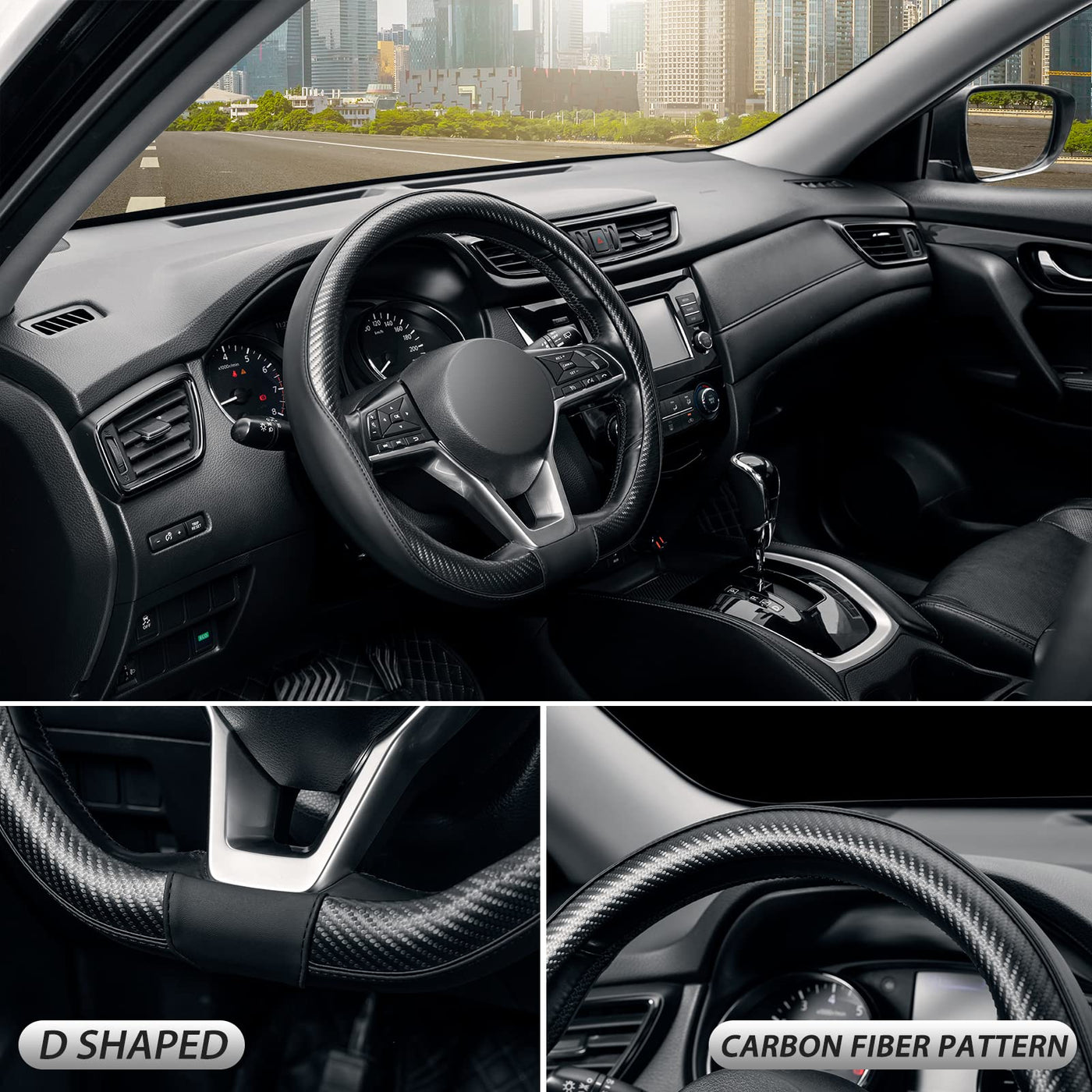 ?D Shape?Nowadays any cars come with a steering wheel that features a flat base that is fancy, sporty, more appealing, and more comfortable. SEG Direct D-type steering wheel covers are precisely designed for 14 1/2-15 inch flat bottom steering wheels. | ?Upgrade Your Car Interior?A worn and faded wheel can put a damper on driving enthusiasm. This durable and easy-to-install steering wheel cover is perfect for boosting the appearance of your cabin or hiding a worn or old steering wheel. | ?Hand-Saver?Crafted with delicate leatherette material, this soft steering wheel wrap enhances your driving comfort, helps reduce driving fatigue, and makes driving even more enjoyable. | ?Non-Slip?Constructed from less slippery microfiber leather exterior and rubber lining, this car wheel cover adds secured safety performance when driving. It also protects your steering wheel from sunburn, scratches, fading, wear, and dirt. | ?Ready to Install?Warm up the steering cover for munites, and slip it on your steering wheel. Installation is fairly easy, any adult can easily install this steering wheel cover.