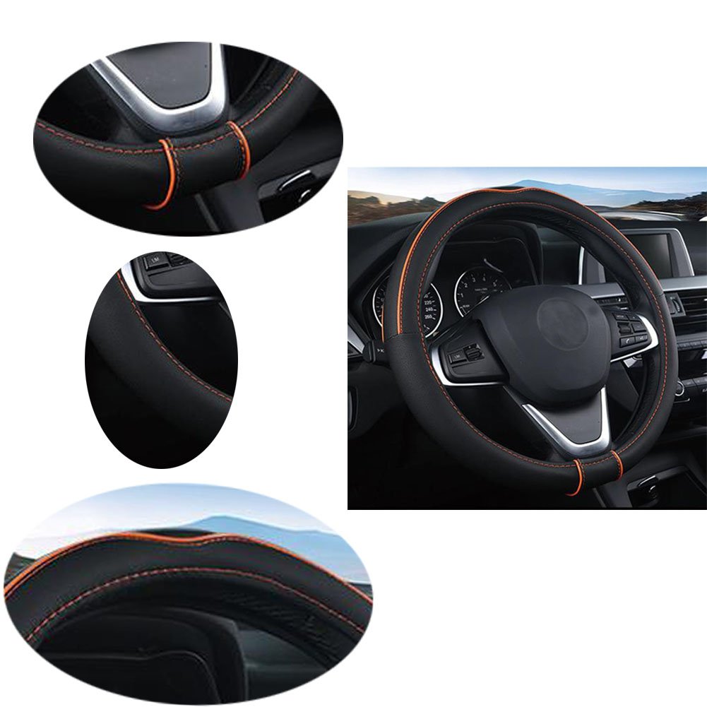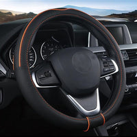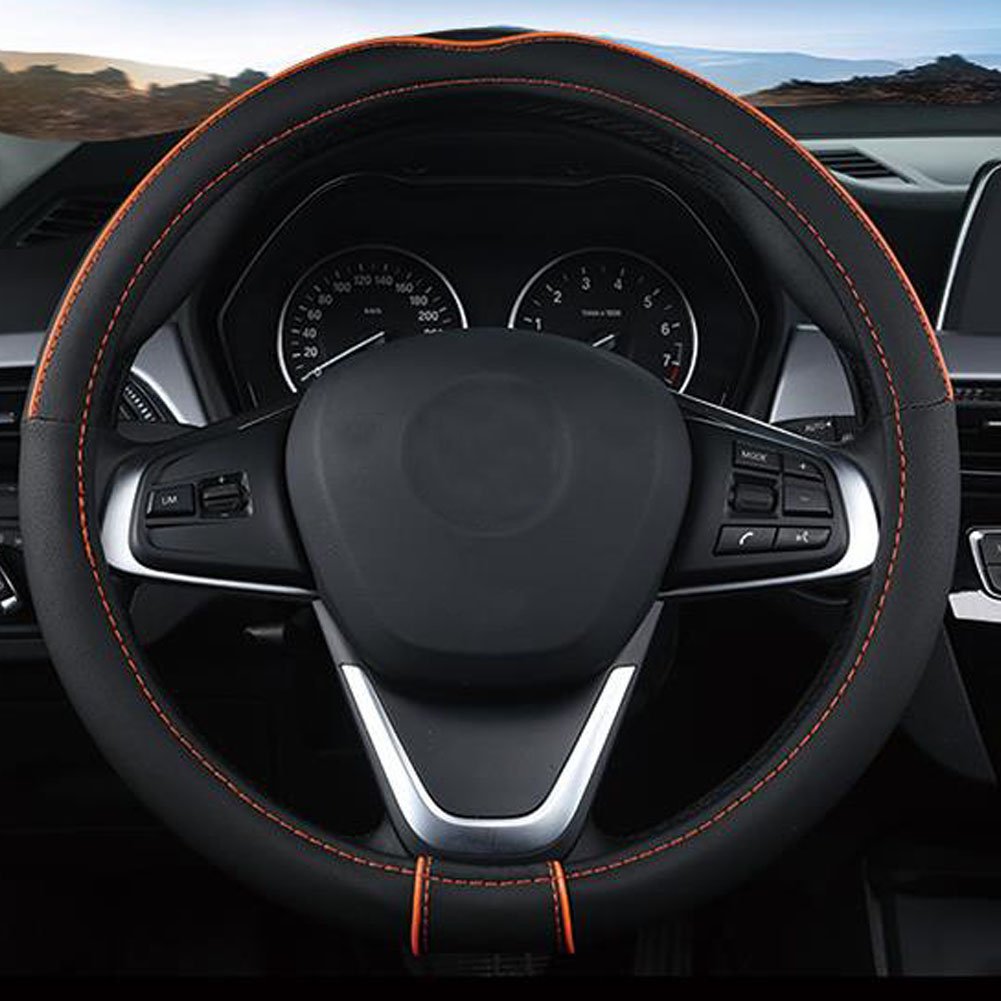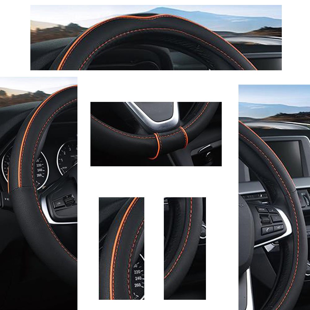 SHIAWASENA Auto Car Steering Wheel Cover, Universal 15 Inch Fit, Soft Leather, Breathable Anti Slip (Black&Orange)