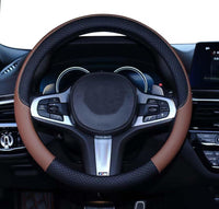 SHIAWASENA Car Steering Wheel Cover, Leather, Universal 15 Inch Fit, Anti-Slip & Odor-Free (Black&Brown)