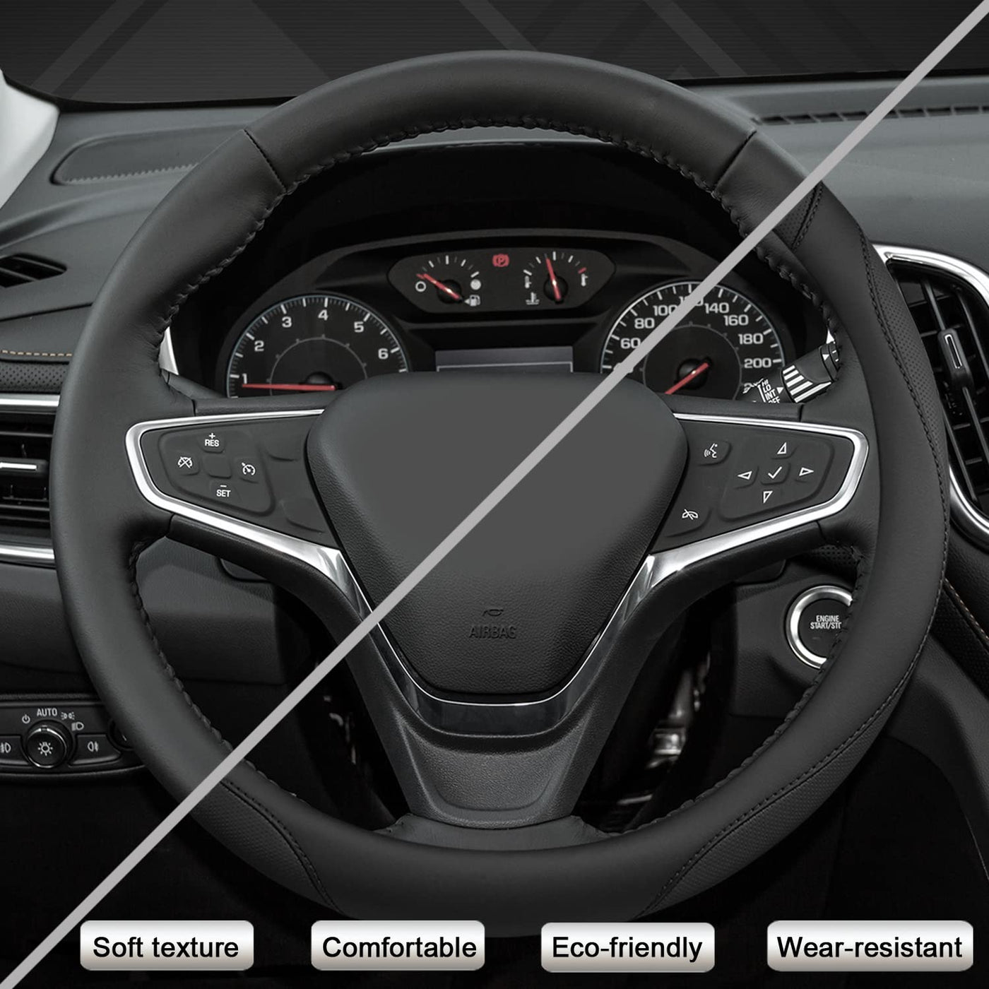 ?CUSTOM FIT? This West Llama steering wheel cover is customized for Chevy standard size steering wheel with 14.5-15 inches diameter. Please check the compatibility list. | ?HIGH-QUALITY MATERIAL? This steering wheel cover is made of high-quality microfiber leather, which is soft texture, comfortable, eco-friendly, wear-resistant, and durable. | ?SAFE ANTI-SKID DESIGN? The inner ring of these steering wheel covers is made of natural rubber and with non-slip design, which improves the grip and improves the control of the steering wheel for safer driving. | ?DECORATION AND PROTECTION?- This elegant steering wheel cover not only protects your steering wheel well, but also perfectly decorate your car interior. The stylish design will blend in perfectly with your car interior. | ?EASY TO INSTALL? You can install this steering wheel cover without any tools, please refer to the installation method in the package. Installation Tips: Since the steering wheel cover is folded to pack, please use a hair dryer to heat it before installation. Heating will make installation easier and help smooth the crease.