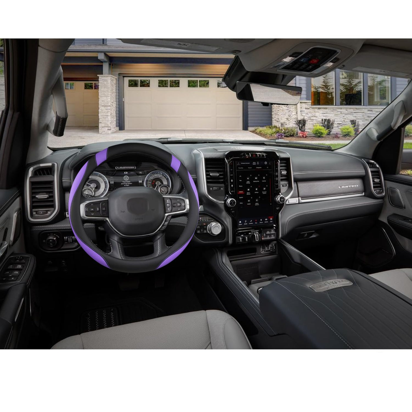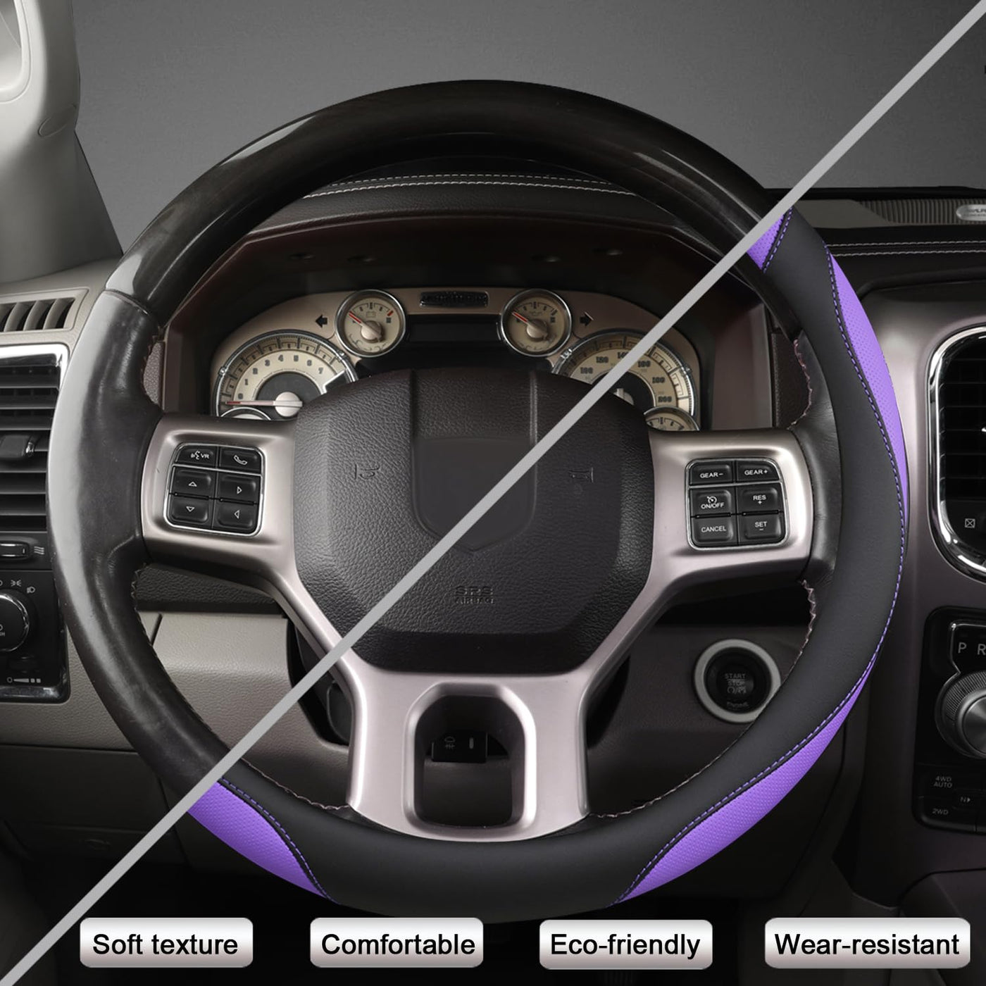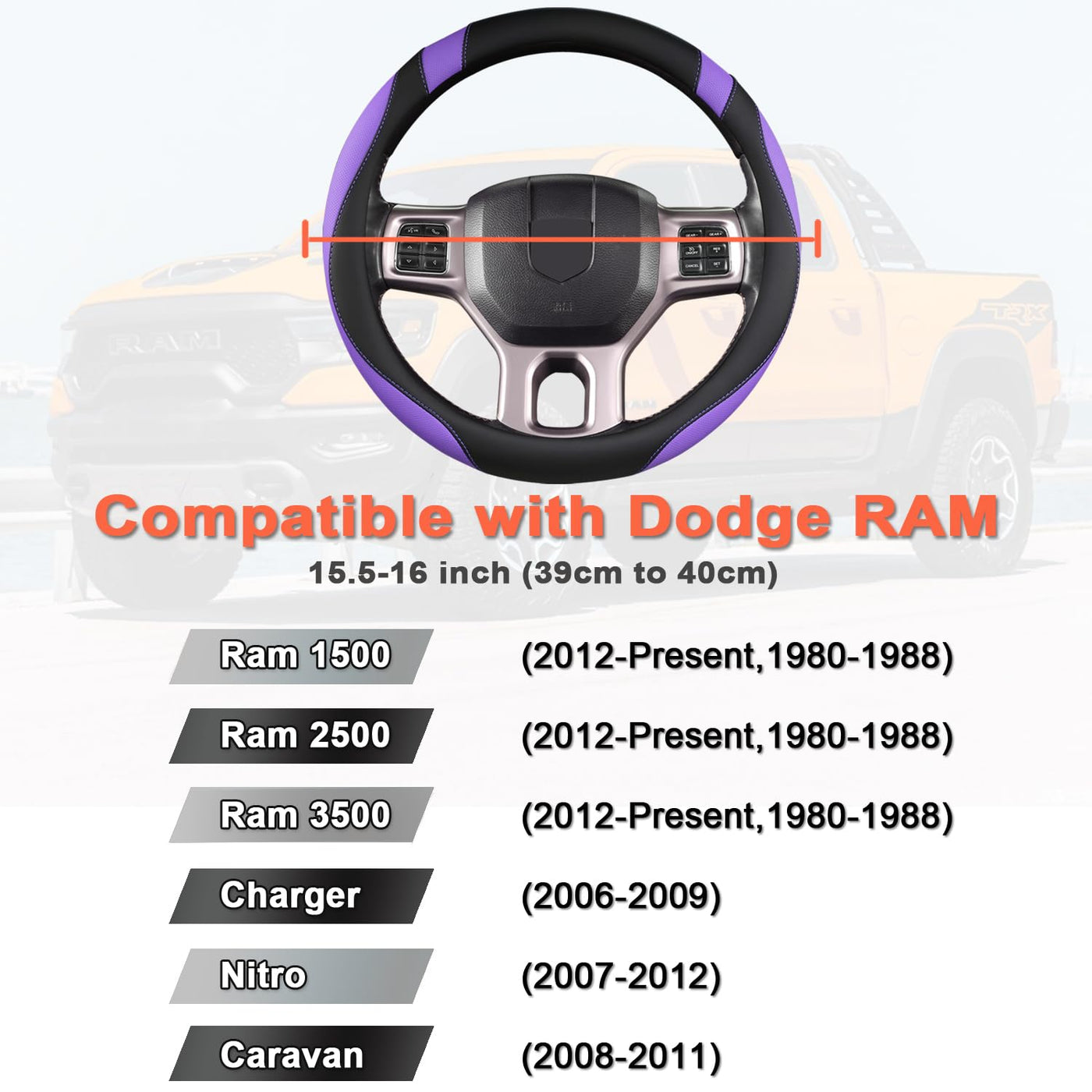 West Llama Customized Auto Car Steering Wheel Cover For Dodge Ram 1500 2500 3500, 15.5-16 Inch (Black+Purple - Large Size)
