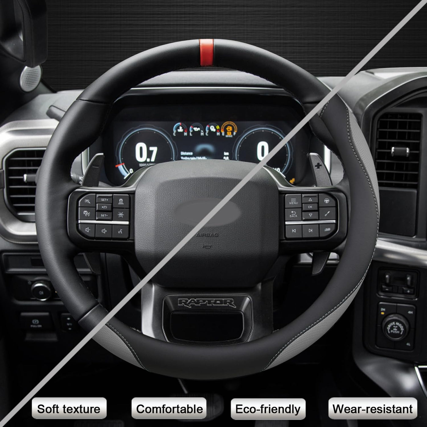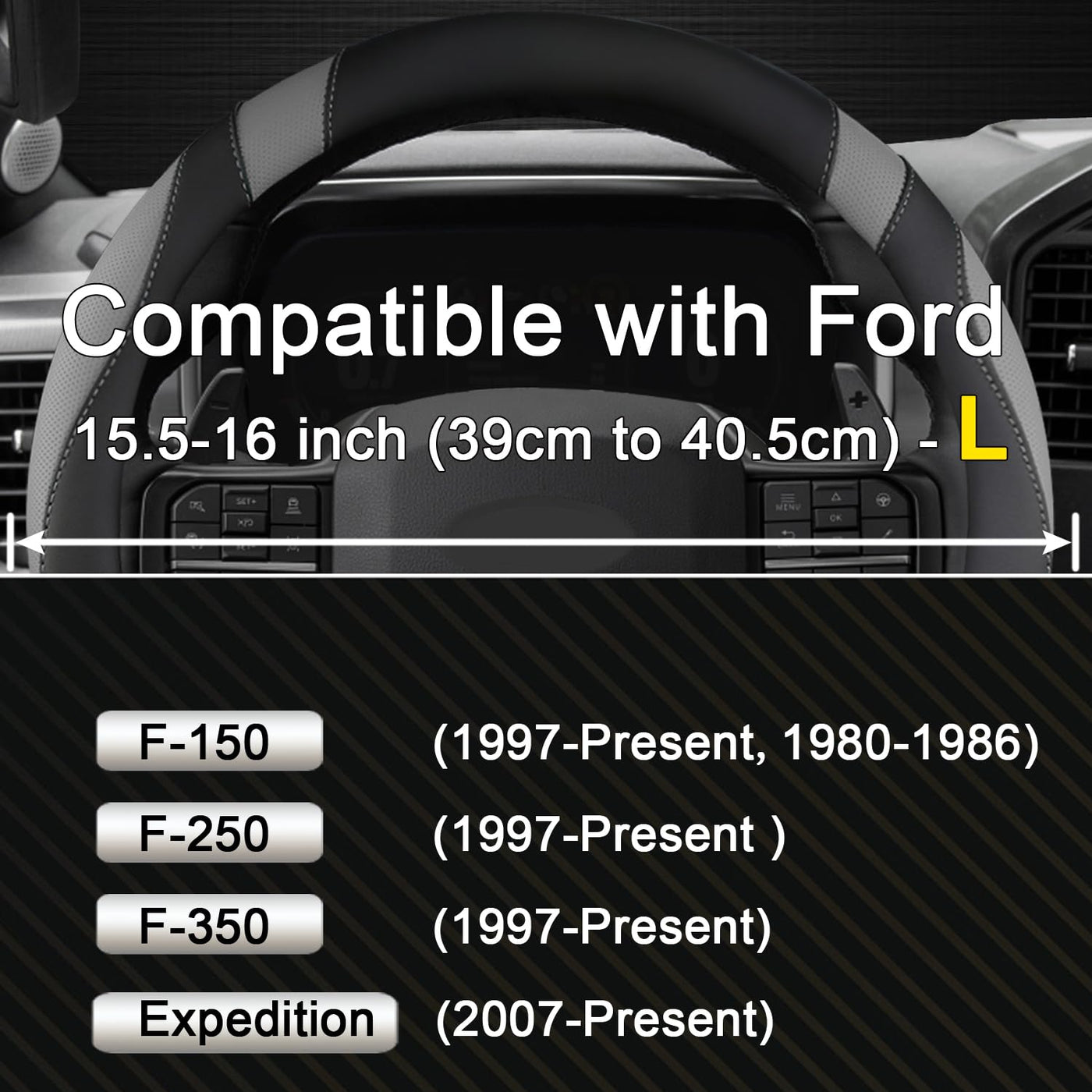 West Llama Customized Auto Car Steering Wheel Cover For Ford F-150, F-250, F-350, Expedition (Black+Gray)