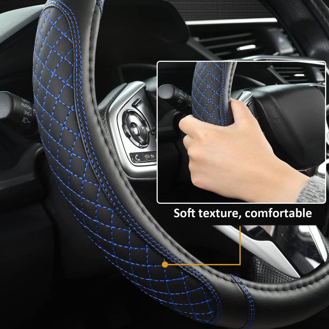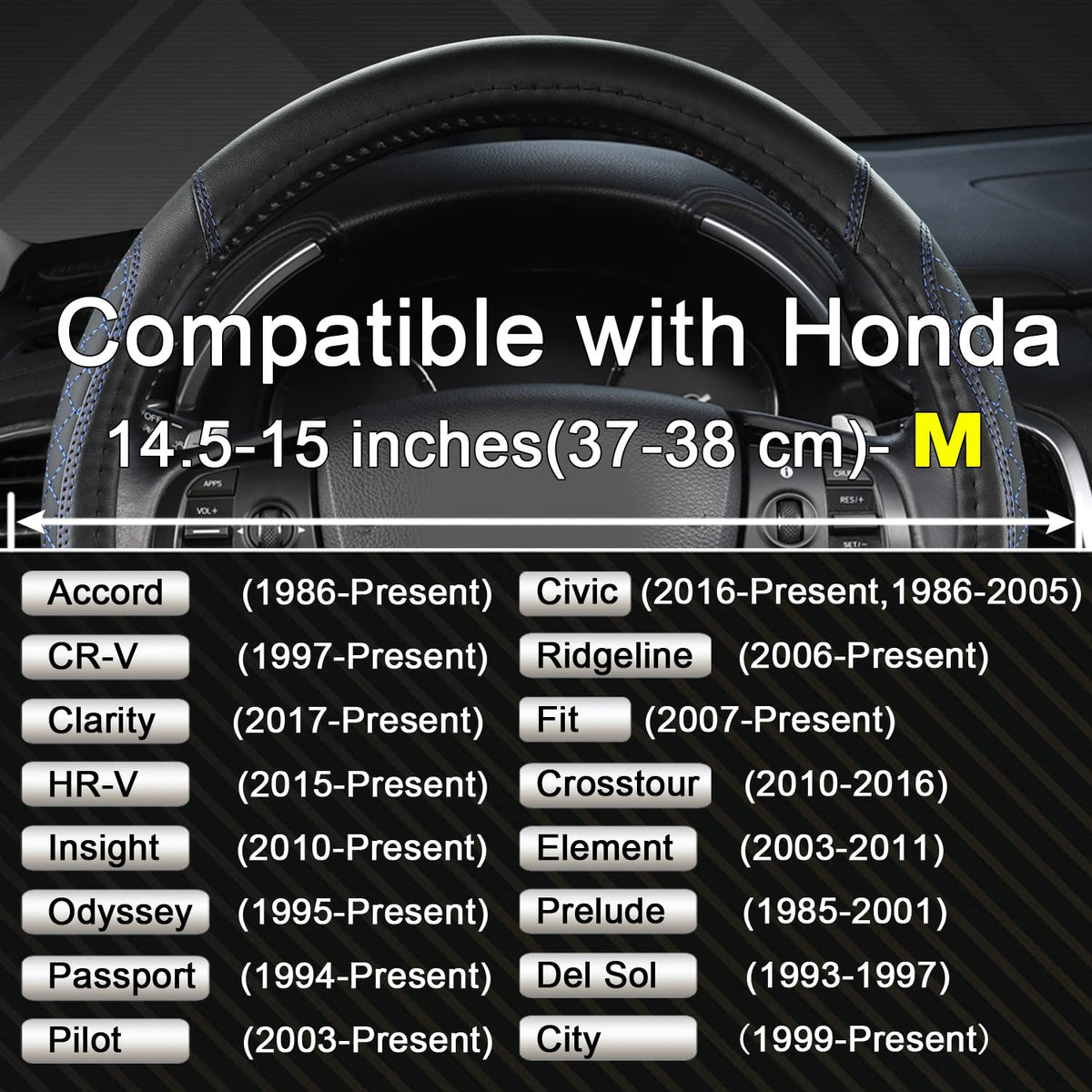 West Llama Customized Auto Car Steering Wheel Cover for Honda Accord CR-V HR-V Pilot Civic(Diamond Quilted -Black+Blue-Standard