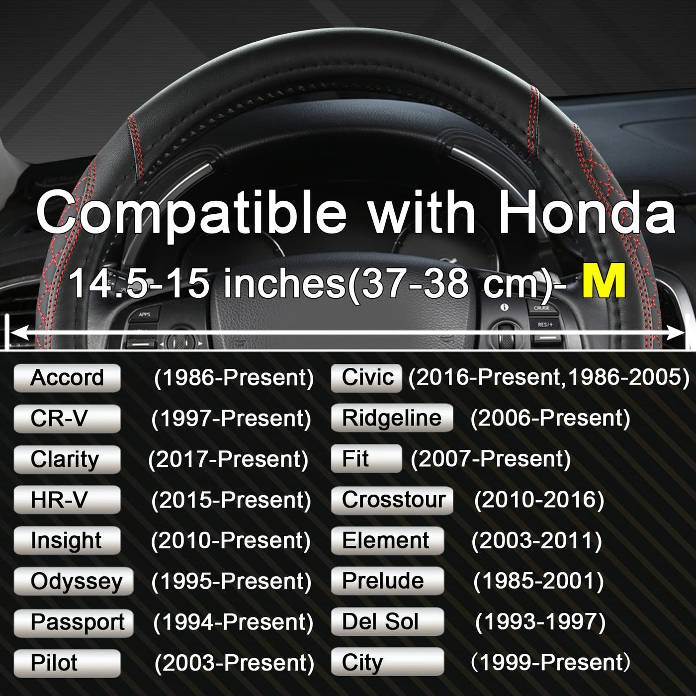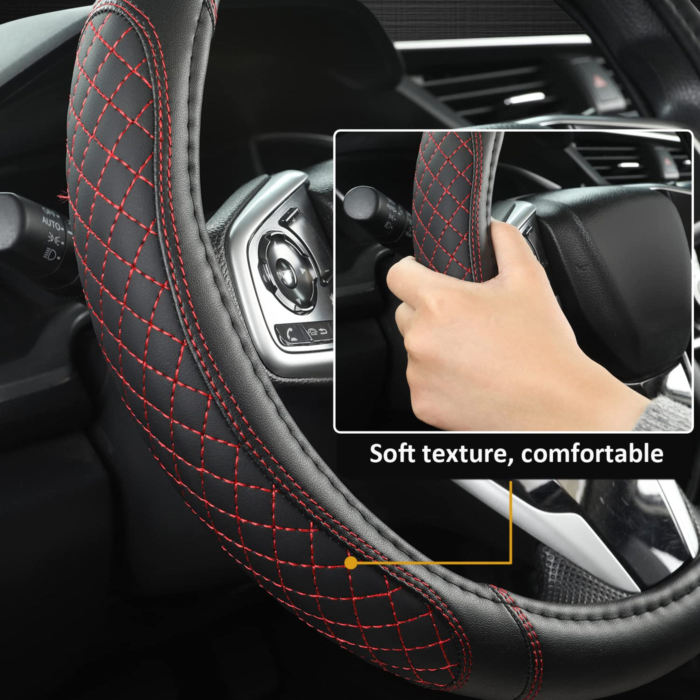 West Llama Customized Auto Car Steering Wheel Cover for Honda Accord CR-V HR-V Pilot Civic(Diamond Quilted -Black+Red-Standard S