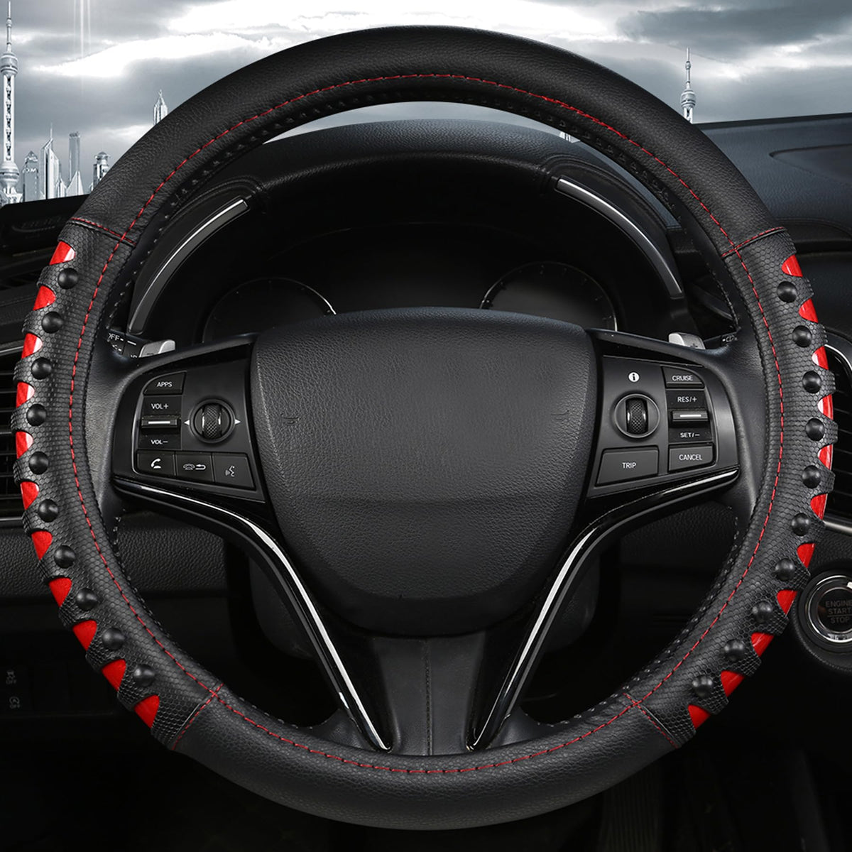West Llama Microfiber Leather Car Steering Wheel Cover For Men Women,Universal Fit 15.5-16 Inchs(Leather Nails-Red+Black-Large S