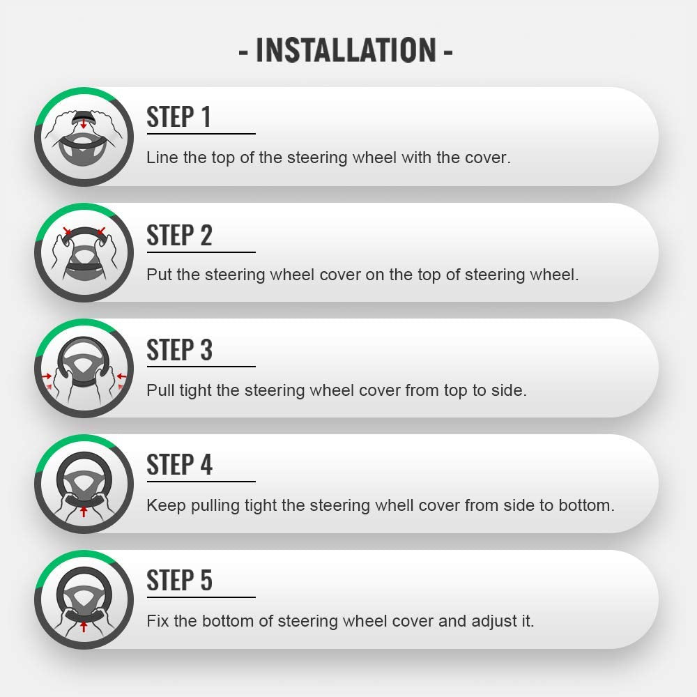 Q: How can I install the steering wheel cover easily?A: For easy installation, heat the cover in the sun or with a hair dryer, place it on the top of the steering wheel, and use both hands to gradually tighten it on each side until it fits snugly.