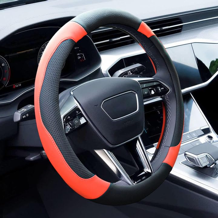 Xizopucy Orange Steering Wheel Cover Microfiber Leather Sporty Car Accessories For Men And Women,Breathable Non-Slip Universal F