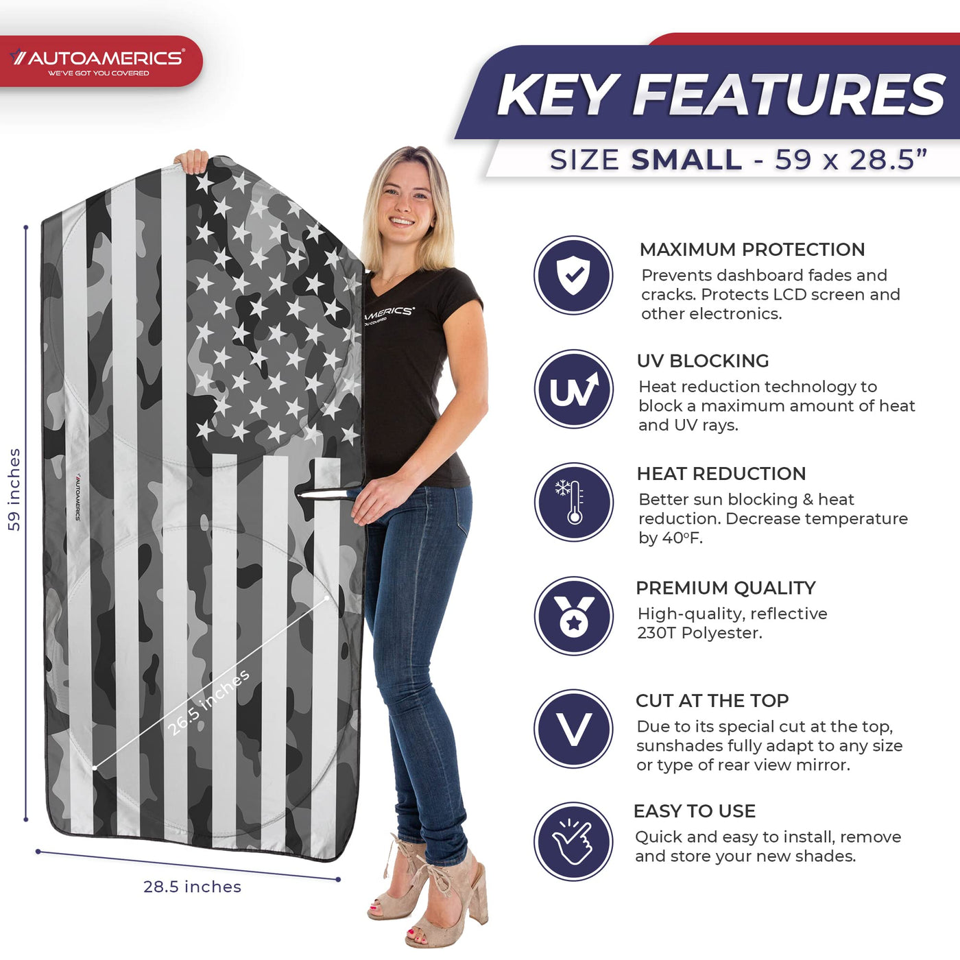 Autoamerics 1-Piece Windshield Sun Shade Gray Camo American Flag Usa Design - Foldable Car Front Window Sunshade For Most Sedans