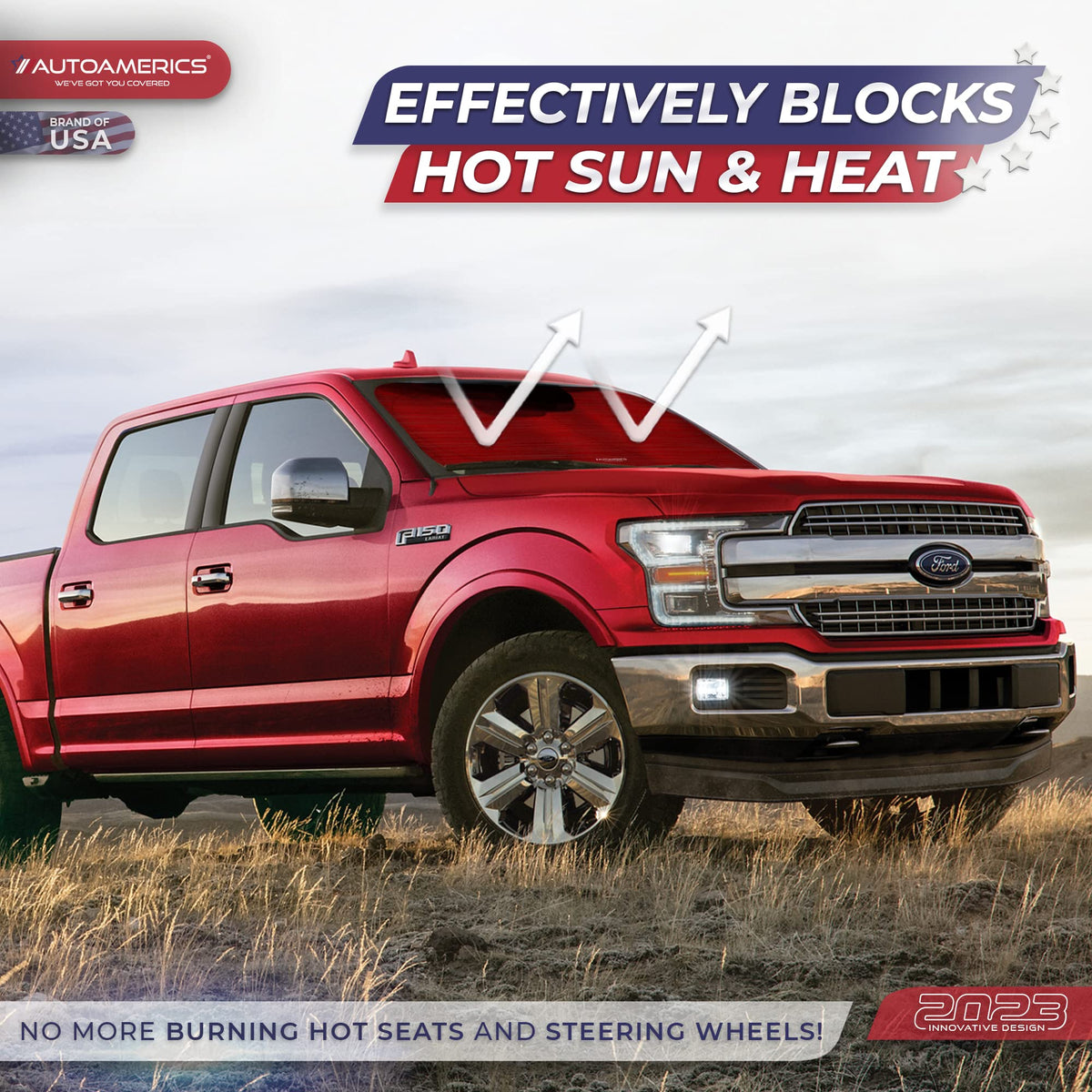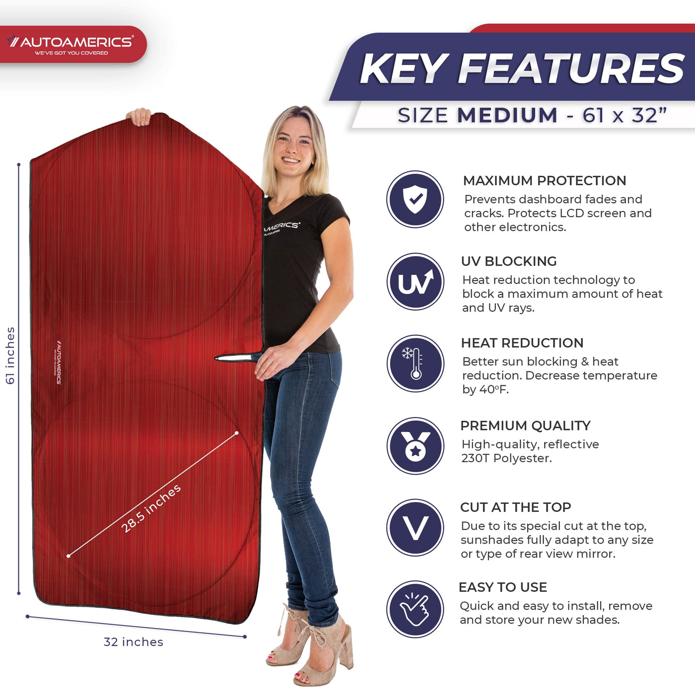 Autoamerics 1-Piece Windshield Sun Shade - Metallic Red Foldable Car Front Window Sunshade For Most Cars Suv Truck Heat Blocker