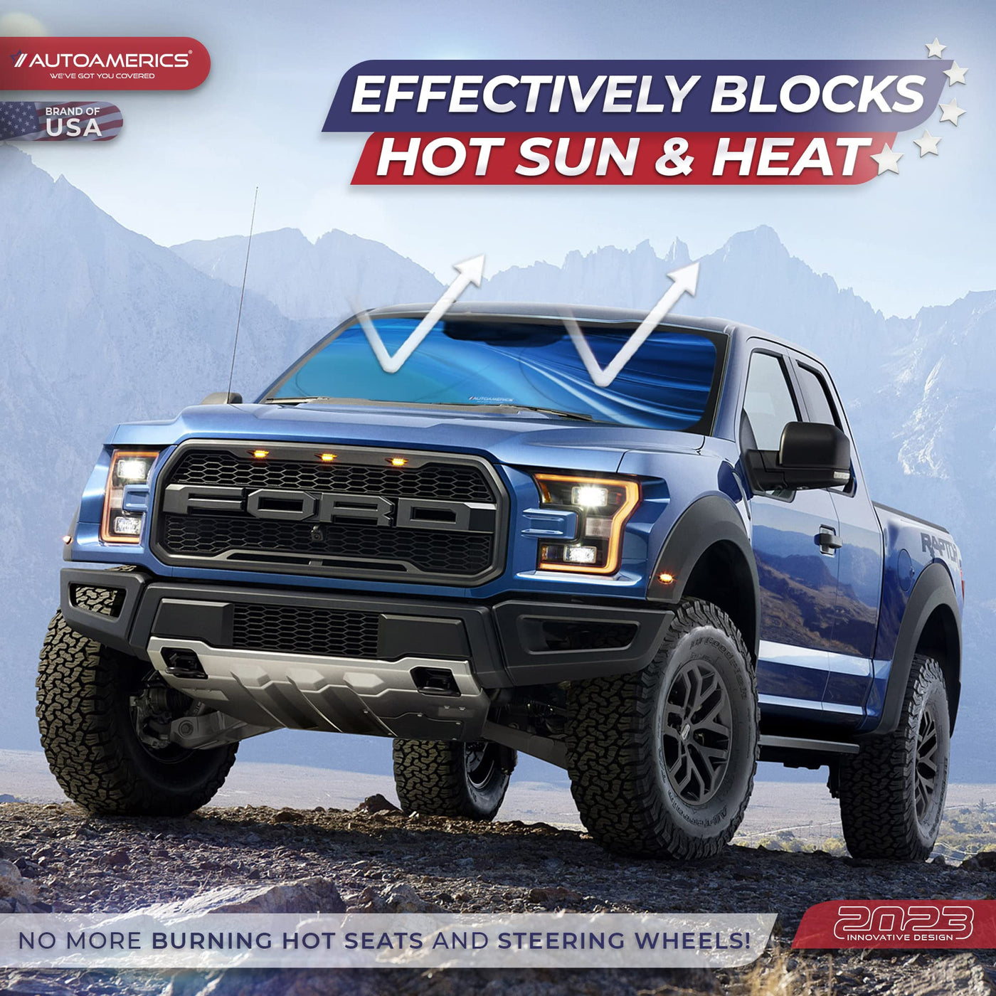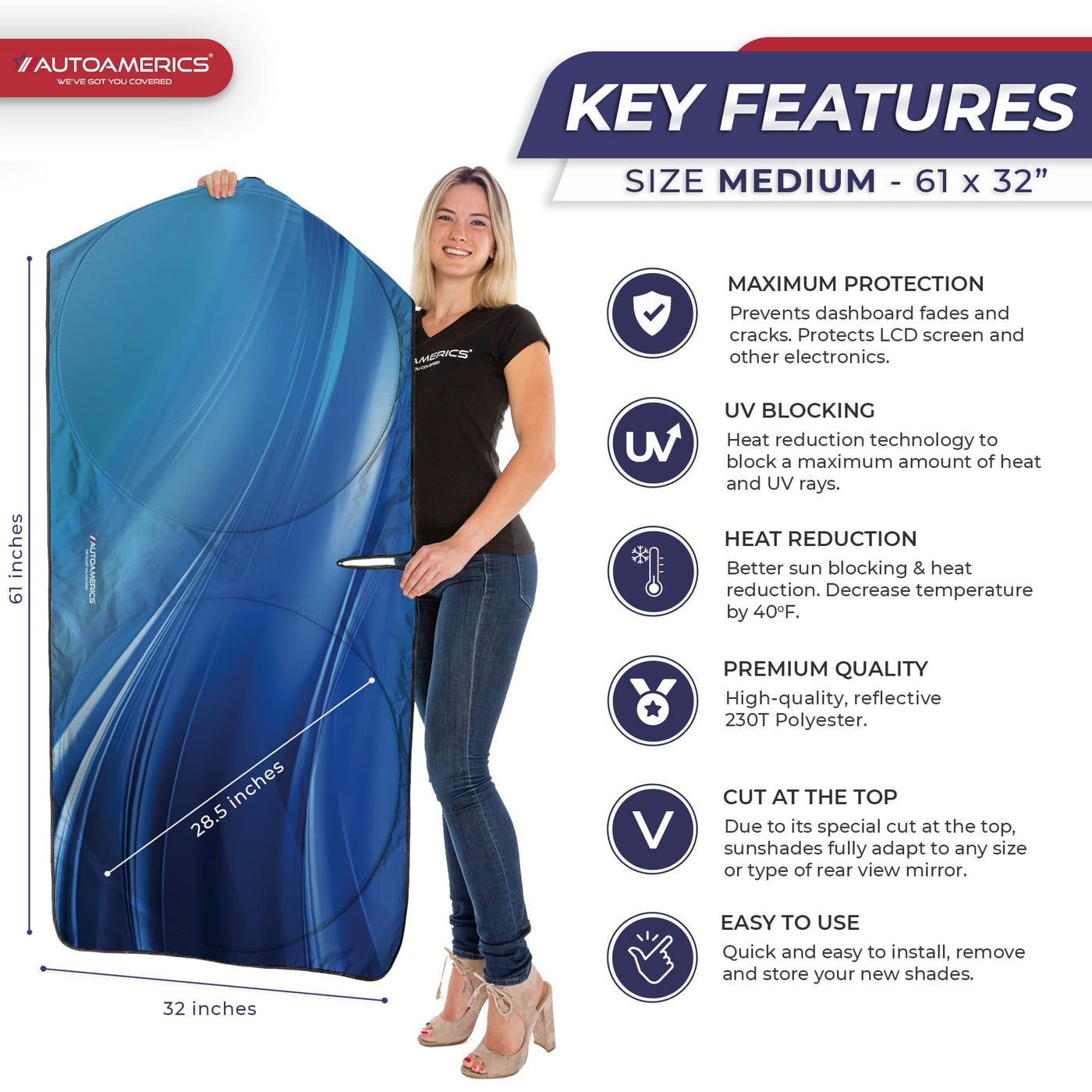 Autoamerics 1-Piece Windshield Sun Shade - Ocean Wave Foldable Car Front Window Sunshade For Most Cars Suv Truck - Heat Blocker