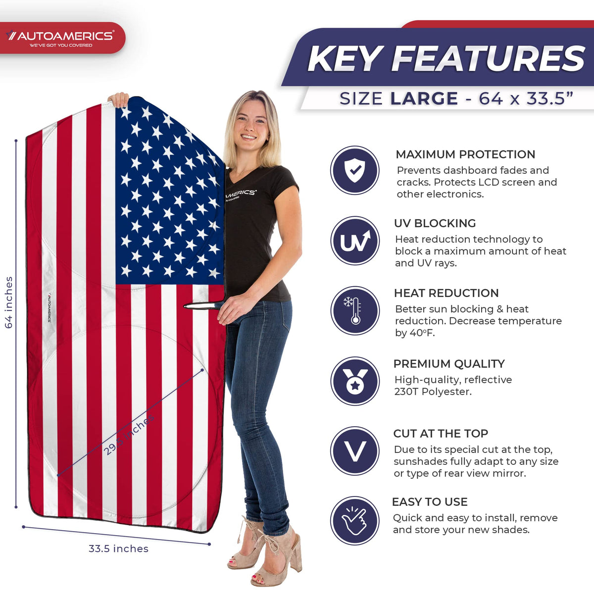 Autoamerics 1-Piece Windshield Sun Shade Original American Flag Usa Patriotic Design - Foldable Car Front Window Sunshade For Se