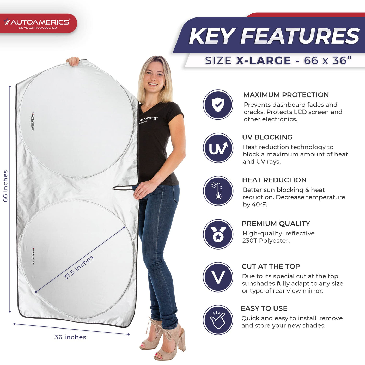 Autoamerics 1-Piece Windshield Sun Shade Standard Silver Foldable Car Front Window Sunshade For Most Cars Suv Truck Heat Blocker