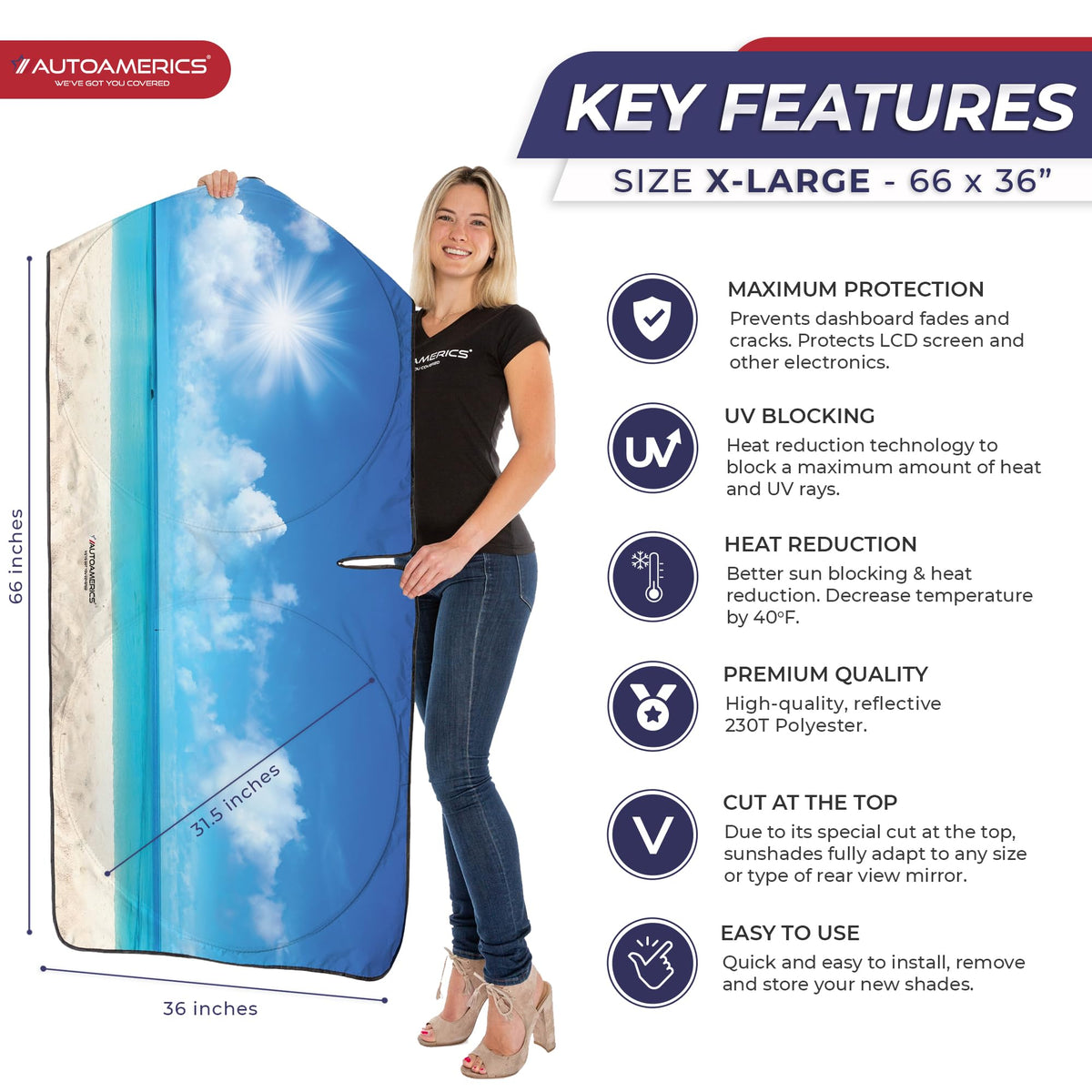 Autoamerics 1-Piece Windshield Sun Shade - Sunny Beach Design Foldable Car Front Window Sunshade For Cars Suv Truck Heat Blocker
