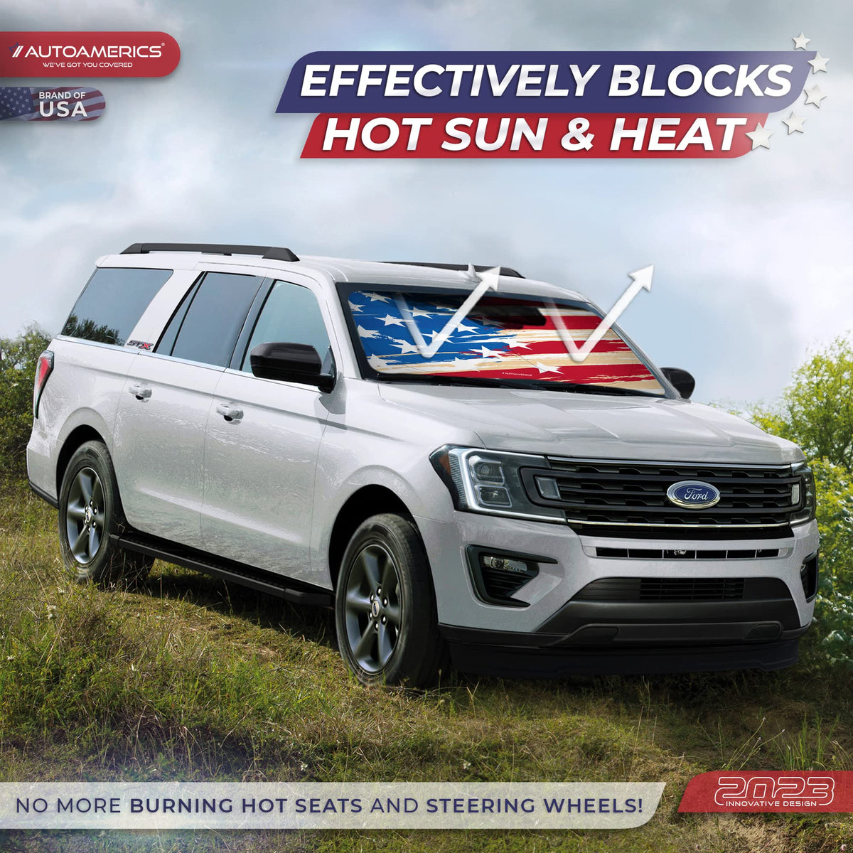 Autoamerics 1-Piece Windshield Sun Shade Usa Art Flag - 1 American Design - Foldable Car Front Window Sunshade For Most Sedans S
