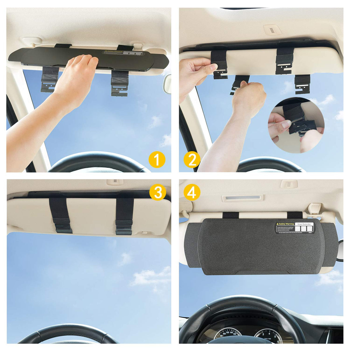 Car Visor Extender TFY Anti-Glare Sun Visor Extender Windshield and Side Window Sunshade and UV Rays Blocker (1 Piece) (Gray)