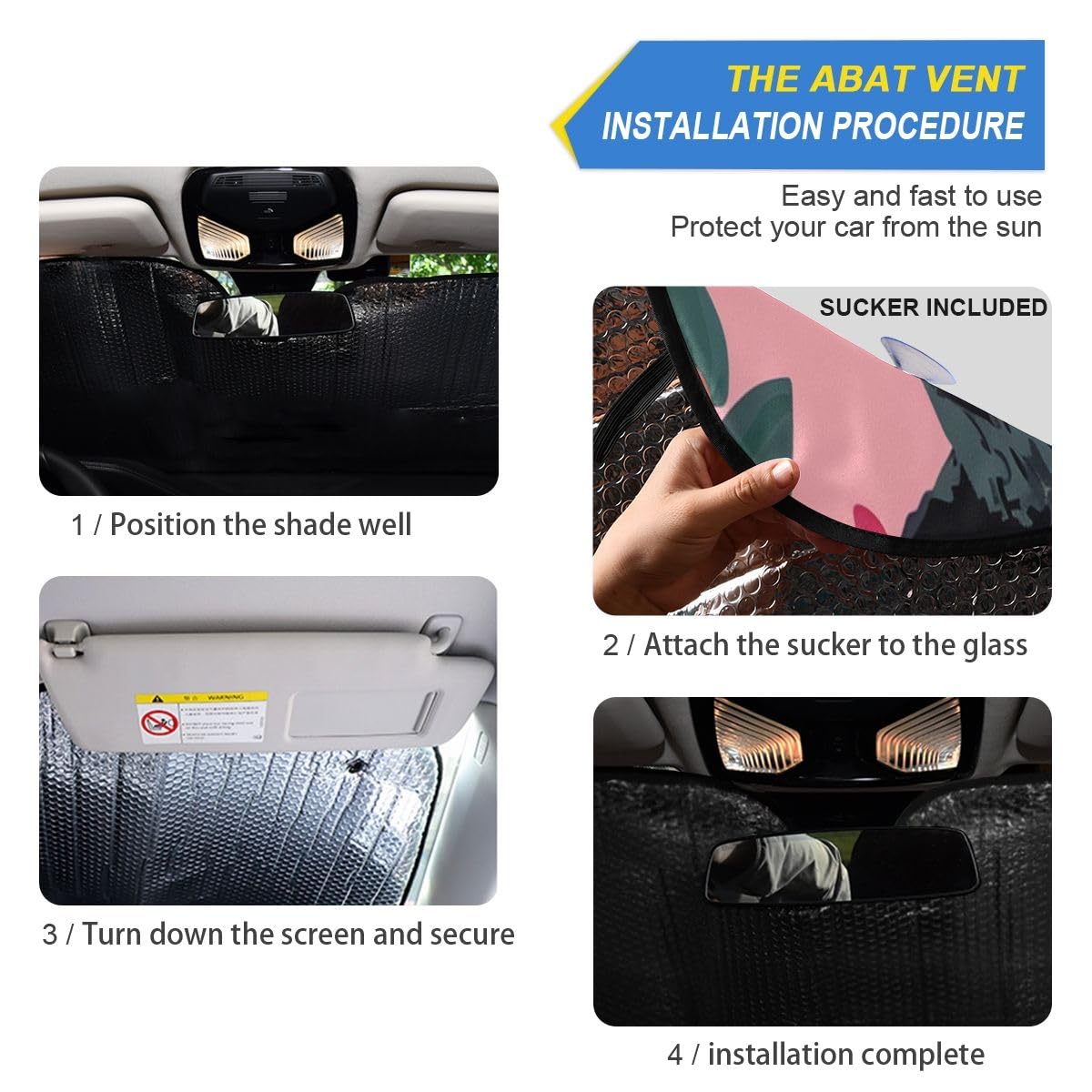 senya Car Windshield Sun Shade, Accordion Folding Auto Sunshade for Car Truck SUV, Blocks Sun Visor Protector, Keep Your Vehicle Cool, Easy To Use, 55'' x 27.6''Size: 55'' x 27.6'' (140 x 70 cm)Features: 1.Protect your car dashboard from cracking and fading by blocking the Sunlight.2.Keeping your vehicle steering and interior at the ideal temperature.3.Reduce the fuel consumption saving air conditioning. 4.Perfectly fits most car windshields 5.Compact, portable and can be taken anywhere! Tips: Our Windshield Sunshade With a dovetail suction cup, the sun visor can be adsorbed on the windshield to increase the stability. When the suction cup is used, it can be soaked in water to increase the adsorption, and the small hole on the suction cup can be quickly removed by gently pulling it.
