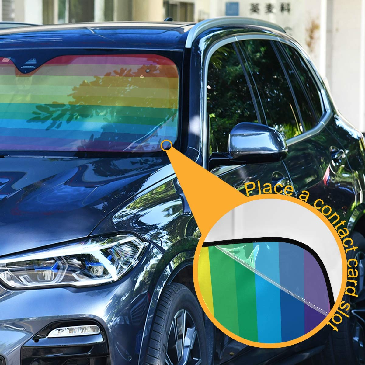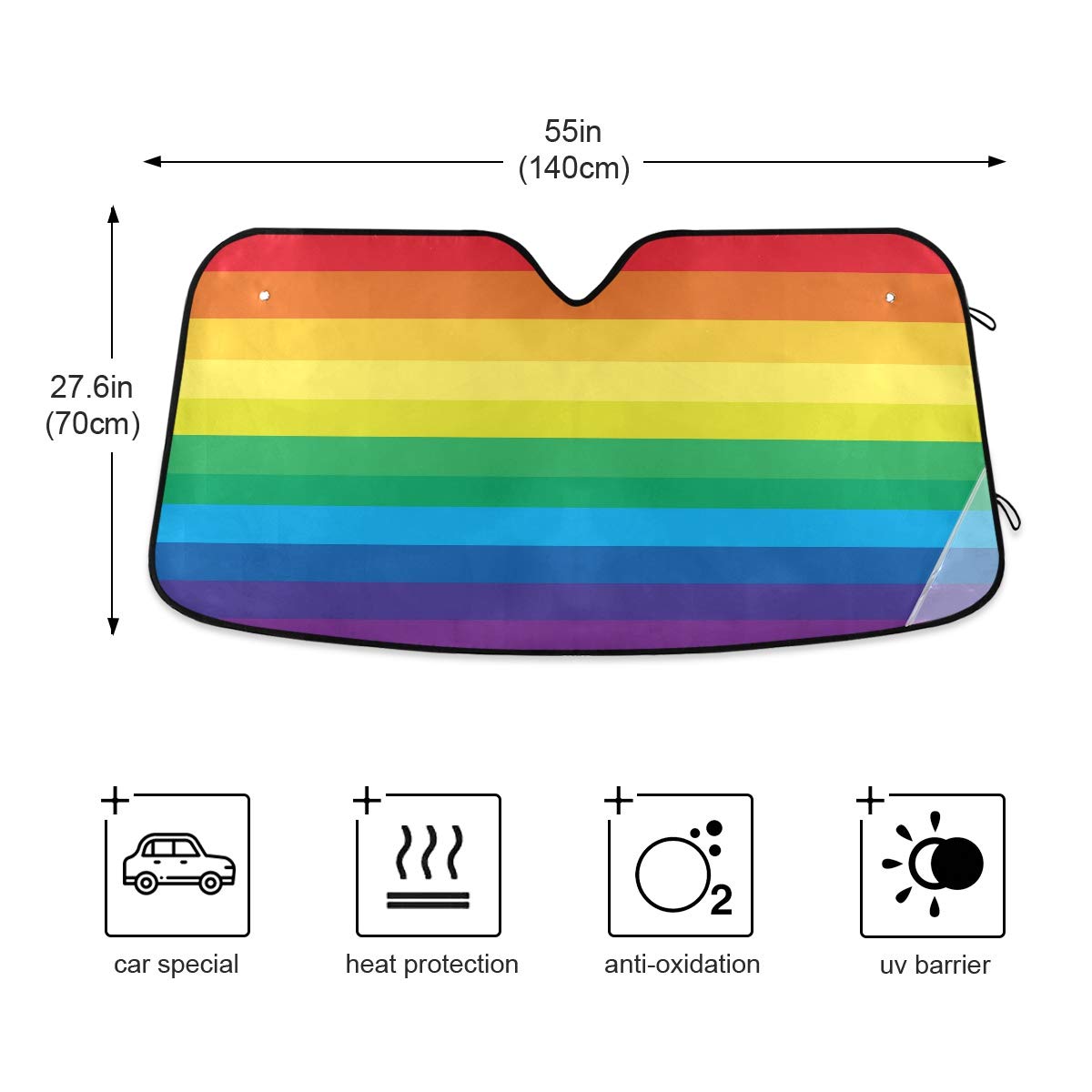 Car Windshield Sunshade Striped Multicolored Rainbow Pattern, Blocks Sun Visor Protector Foldable Sun Shield Keep Your Vehicle C