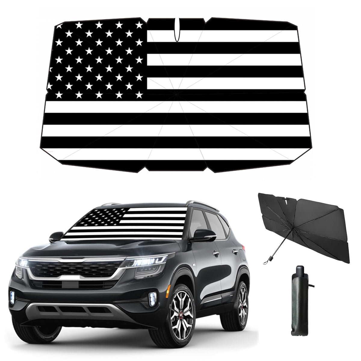 Coricha Windshield Sun Shade American Flag Umbrella Car Sun Shade Windshield- USA Patriotic Design Foldable Car Front Window Sun
