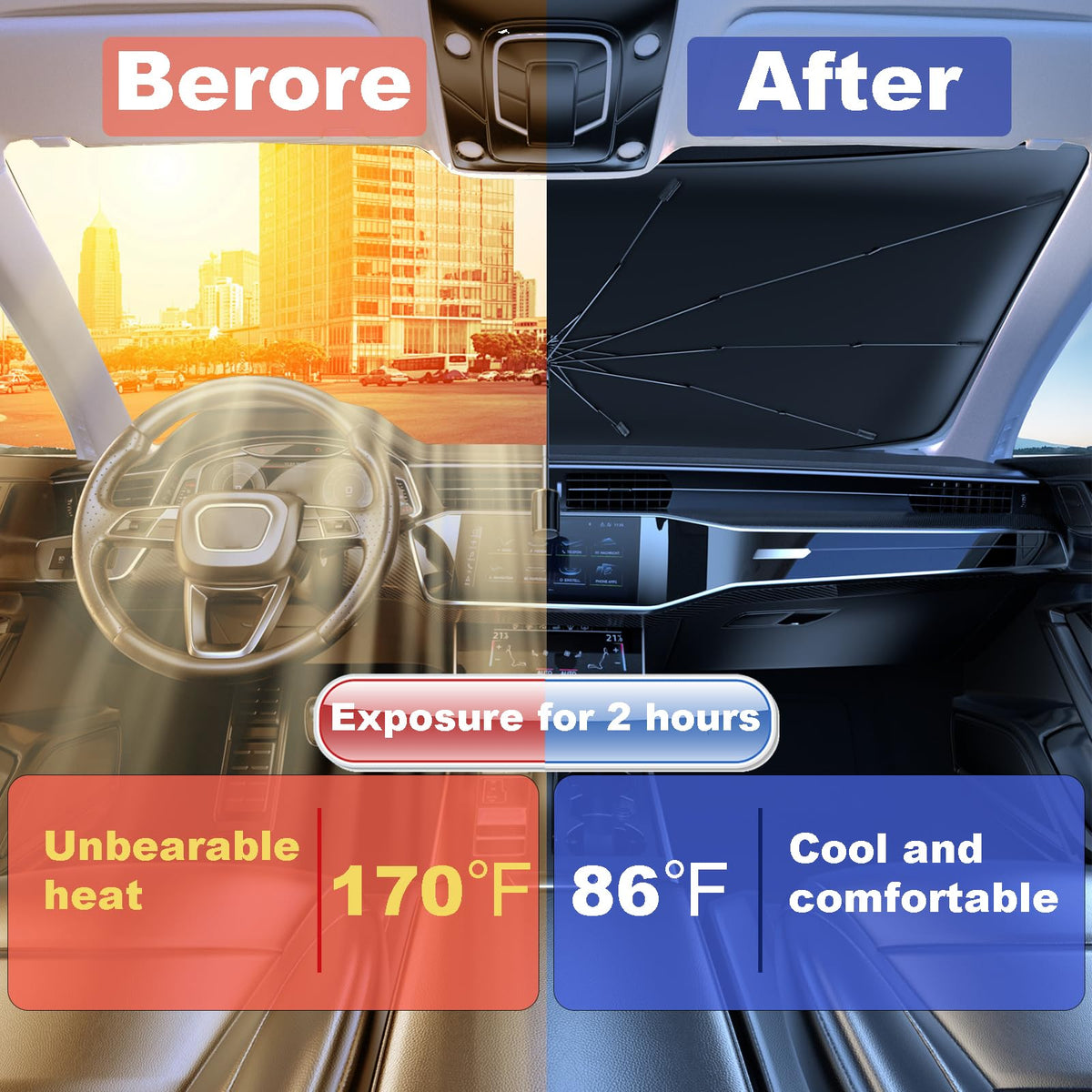 Coricha Windshield Sun Shade Umbrella for Car Front Window Car Sun Shade Visor for Windshield Funny 2024 Upgraded Car Summer Accessories Protect Car from Sun Rays & Heat Offers Ultimate Protection for Car Interior 57*31