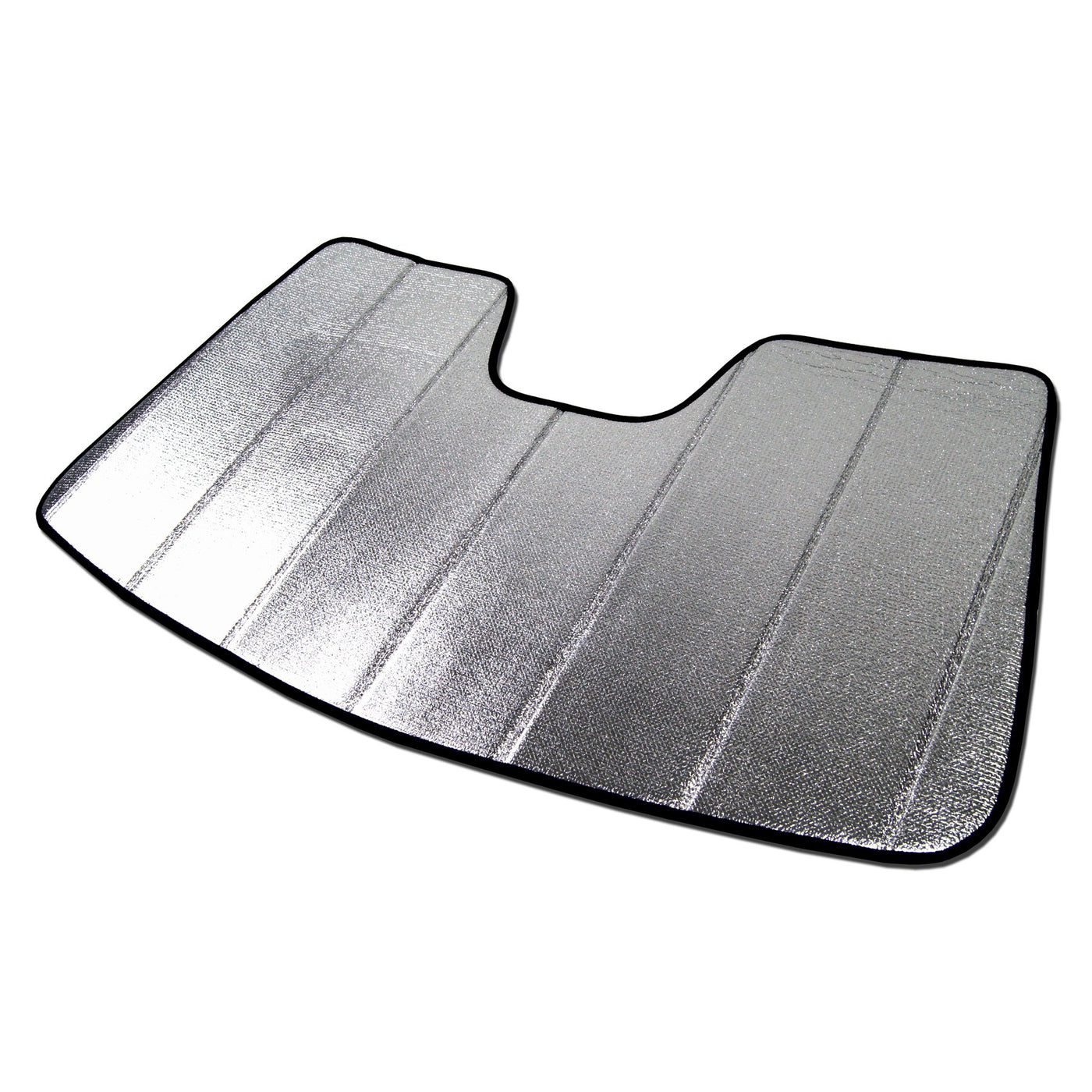 Keep your car cooler and protect your investment with this custom-fit sunshade, designed specifically for your vehicle car accessories. Spec & Features: 1) Perfect Fit & Blocks Heat Car Sun Shade Windshield: Tailored for your car with precision cutting for a gap-free, secure fit. Reflective Mylar film reflects sunlight and keeps your car significantly cooler. 2) Protects from Sun Damage: Shields your dashboard, steering wheel, and seats from harmful UV rays that can cause cracking and fading. 3) Easy & Quick Installation: Pops open in seconds for immediate use and folds for compact storage. No assembly required! 4) Durable & Reliable: Made with high-quality materials like reflective Mylar and felt backing for long-lasting performance. 5) Bonus Feature: Includes a convenient storage pouch for easy folding (no rolling necessary). Tech Specs: 6) Material: Reflective Mylar Film (Front) & Felt Backing (Back) 7) Anti-Droop Design: Built-in support boards prevent sagging 8) Temperature Reduction: Up to 30F decrease in parked car temperature Dimensions: Length(Inch): 27.6'' Width(Inch): 51.4''