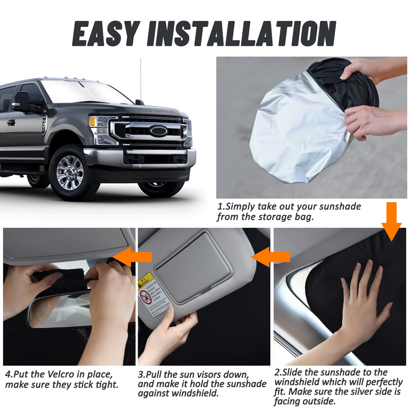 D-Lumina Windshield Sun Shade For 2017-2024 Fo-Rd F250 F350 F450 F550 Super Duty 2/4 Door Accessories, Front Window Sunshade Sun